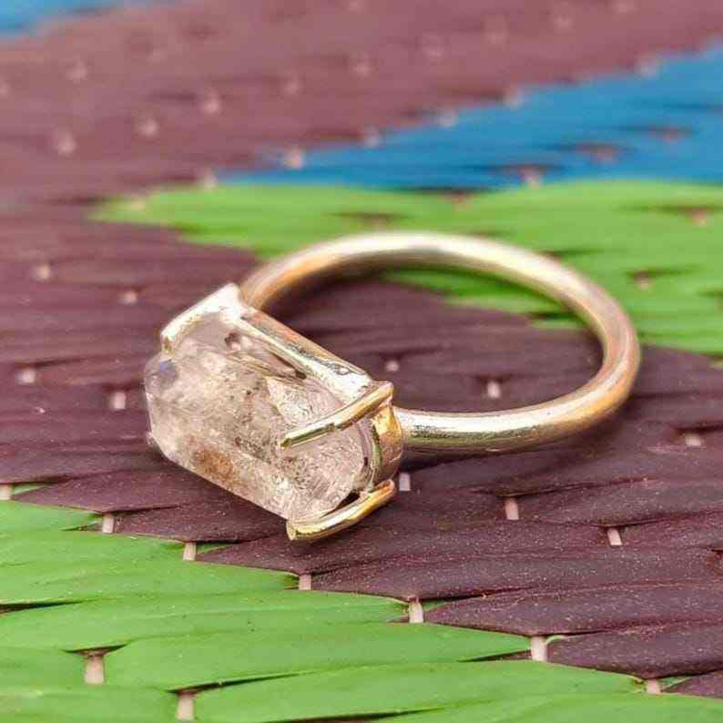 แหวนเงินโบโฮทำด้วยมือพร้อมหินควอตซ์คริสตัลเพชรธรรมชาติ