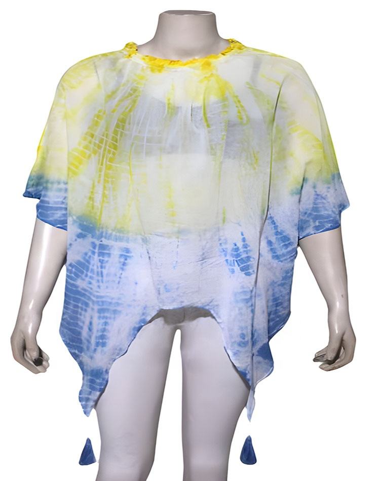 เสื้อฤดูร้อนสไตล์โบฮีเมียนทำด้วยมือสำหรับเด็กผู้หญิงเสื้อตัวสั้นมัดย้อมผ้าเรยอน100% พร้อมพู่ลายทางเสื้อเดรสตัวบน