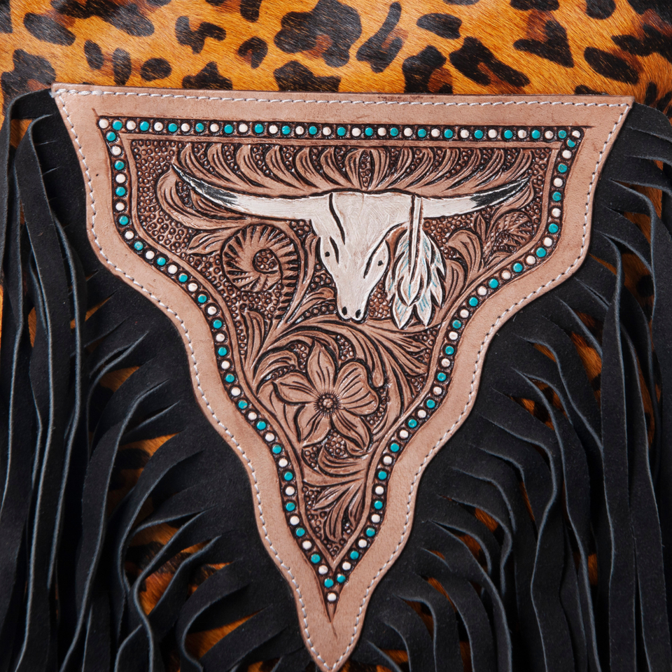 กระเป๋าหนังนิ่มโบฮีเมียนทำด้วยมือลายดอกไม้ท้องฟ้า Aztec พร้อมฝาปิดซิปด้านหลัง