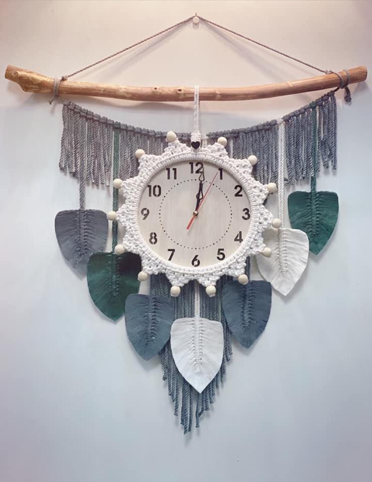 แฮนด์เมดนาฬิกาแขวน Boho ถักเครื่องประดับผ้า Macrame สําหรับตกแต่งบ้านการออกแบบล่าสุดพร้อมรูปแบบชีวิตยังคง