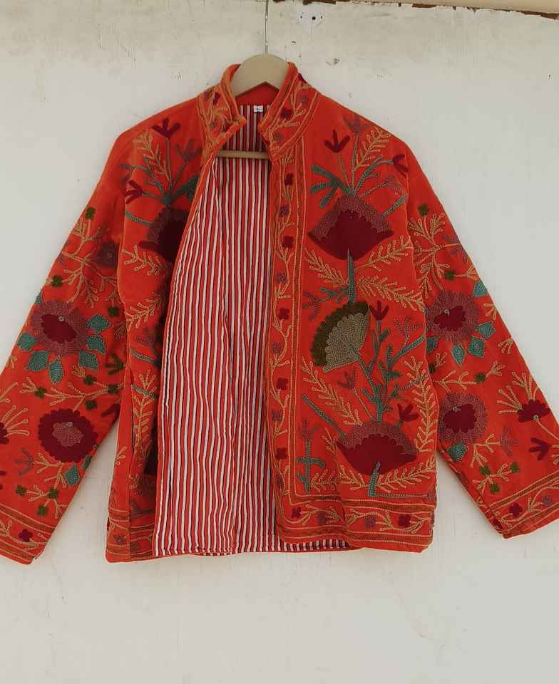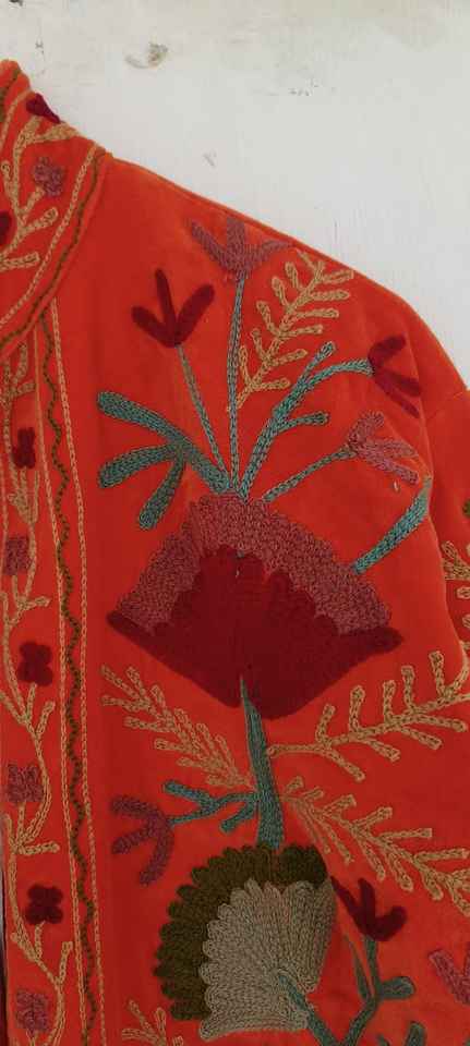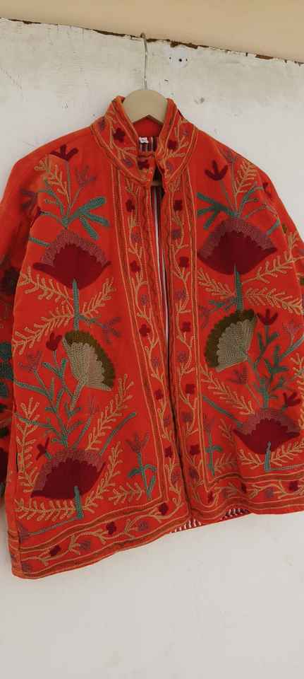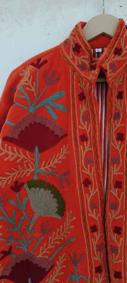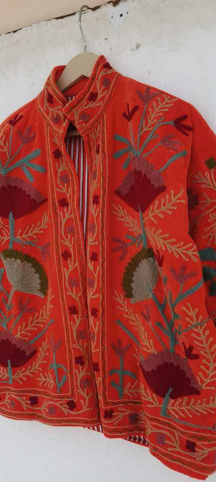 เสื้อแจ็คเก็ตกำมะหยี่ปักลายโบโฮทำมือ งานปักซูซานี เสื้อคลุมกิโมโนสั้นชายหาดสไตล์โบฮีเมียน