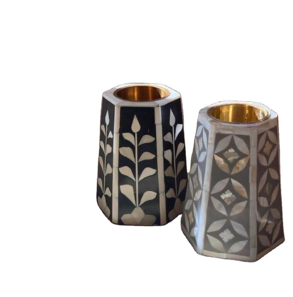 เตาเผาบัคฮูร์แบบฝังกระดูกทำมือ ประดับมุกเรซิ่น เตาเผาเครื่องหอมอาหรับ ยี่ห้อ Axiom Home Accents
