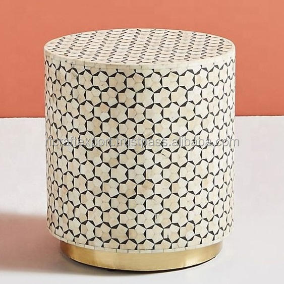 เก้าอี้สตูลทรงกลมฝังกระดูกและฐานรองแบบแฮนด์เมดโต๊ะข้างโต๊ะรับประทานอาหารแบบคลาสสิกเก้าอี้สตูลยืนสำหรับใช้ในบ้าน