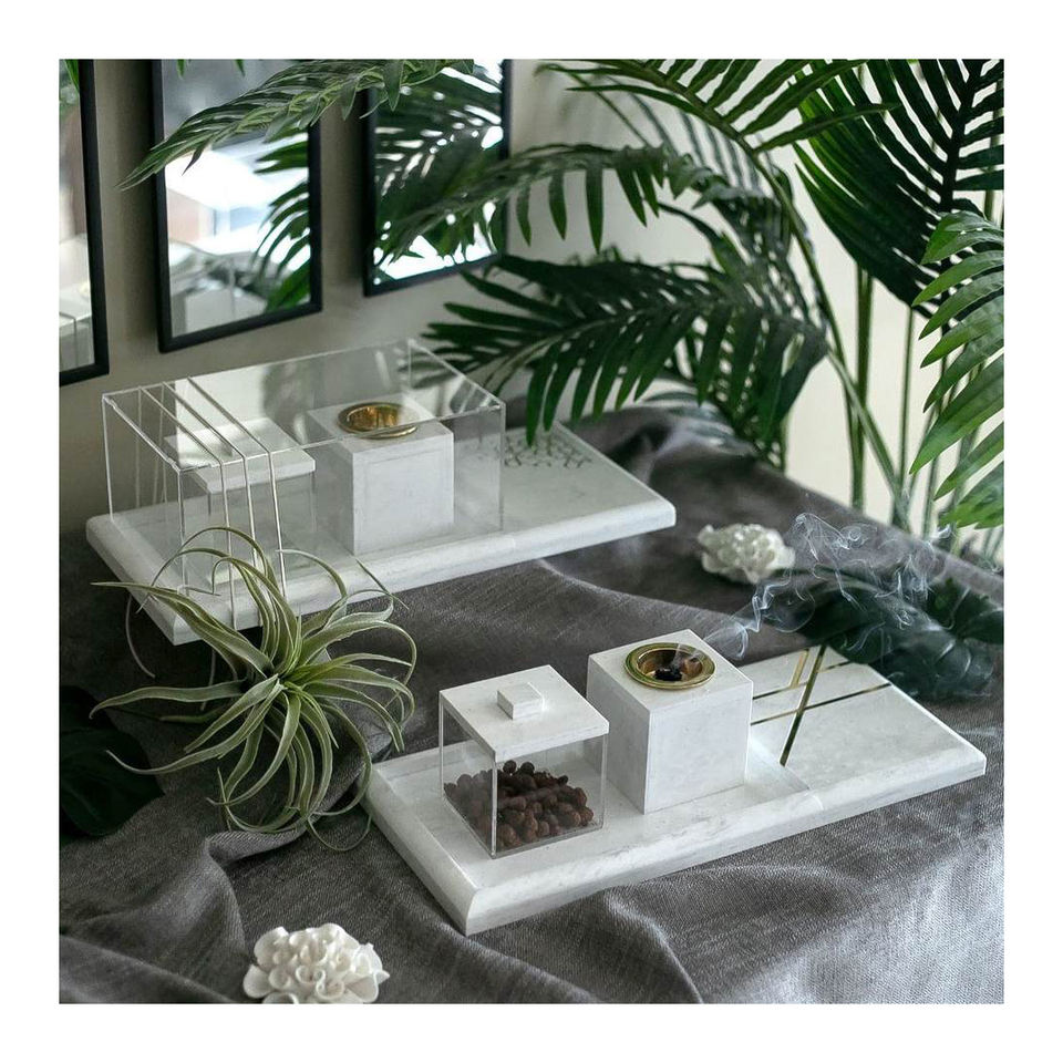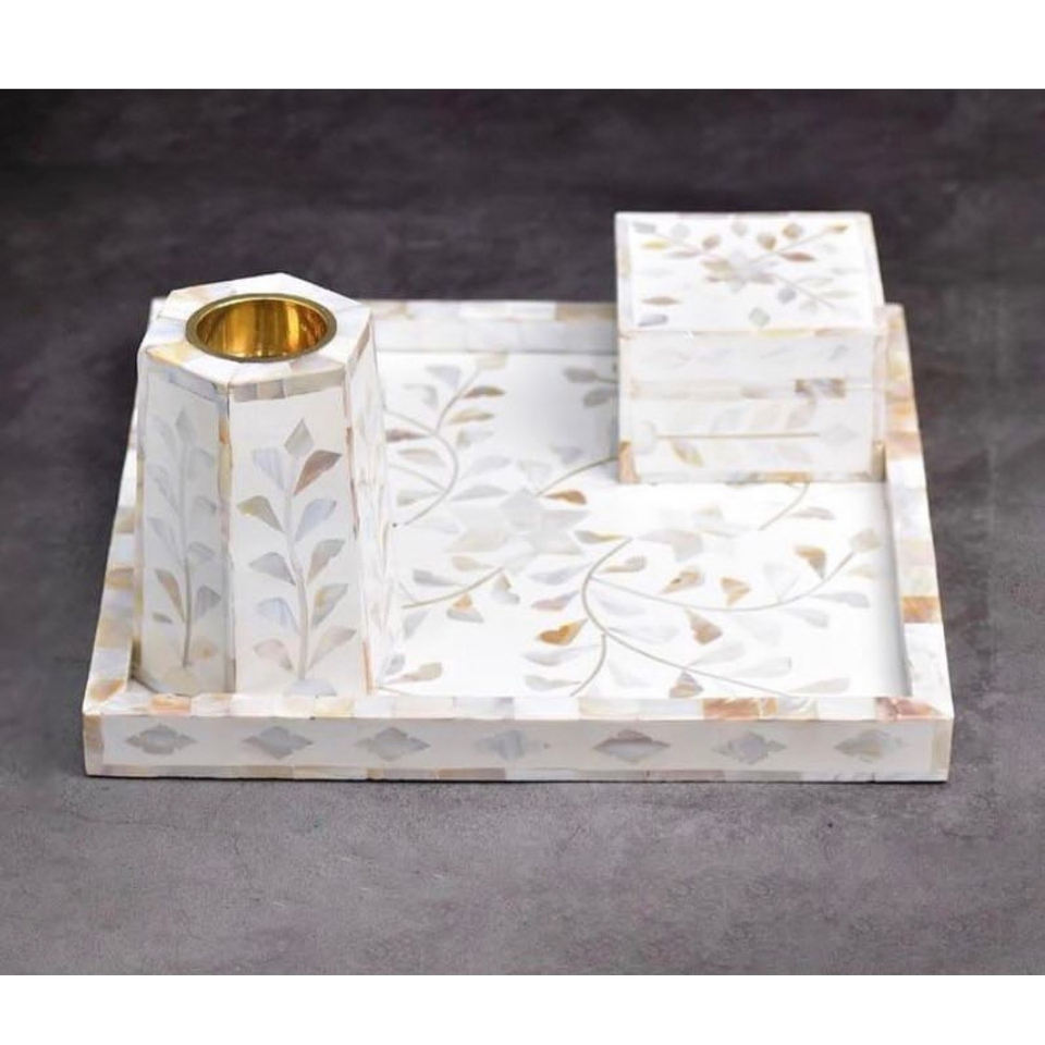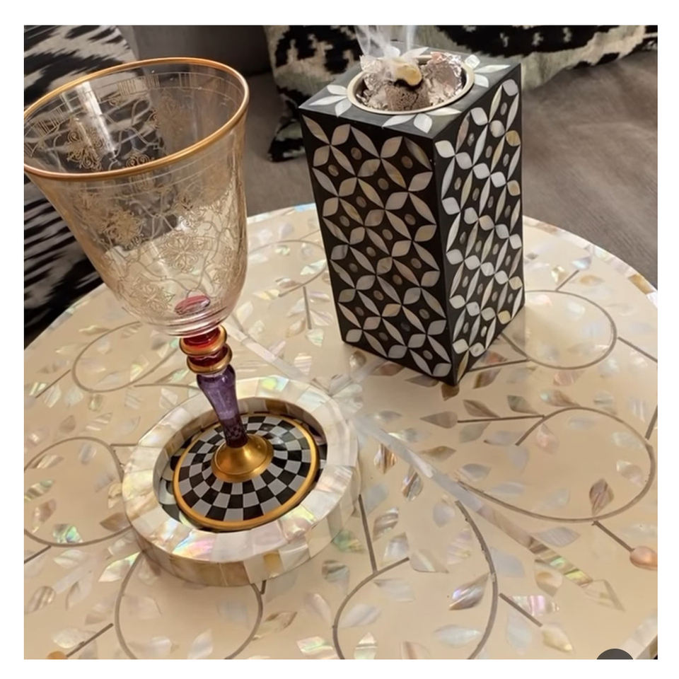 Handmade Bone Mother Pearl Inlay Arabic Islamic Religious Shopping Incense Burner Gift Set with Resin Box MOP Tray by Falah
