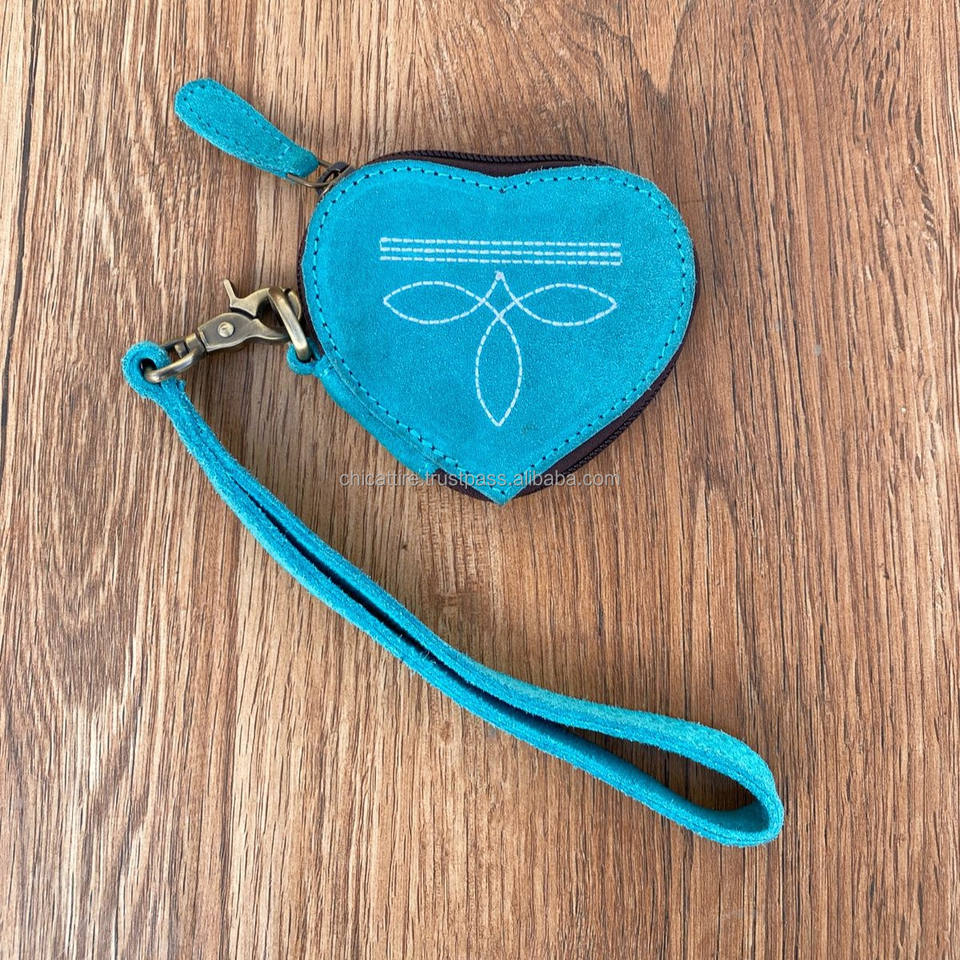 กระเป๋าหนังนิ่มรูปหัวใจทำด้วยมือสำหรับผู้หญิงกระเป๋าใส่เหรียญขนาดเล็กสายหนังแท้แบบตะวันตก
