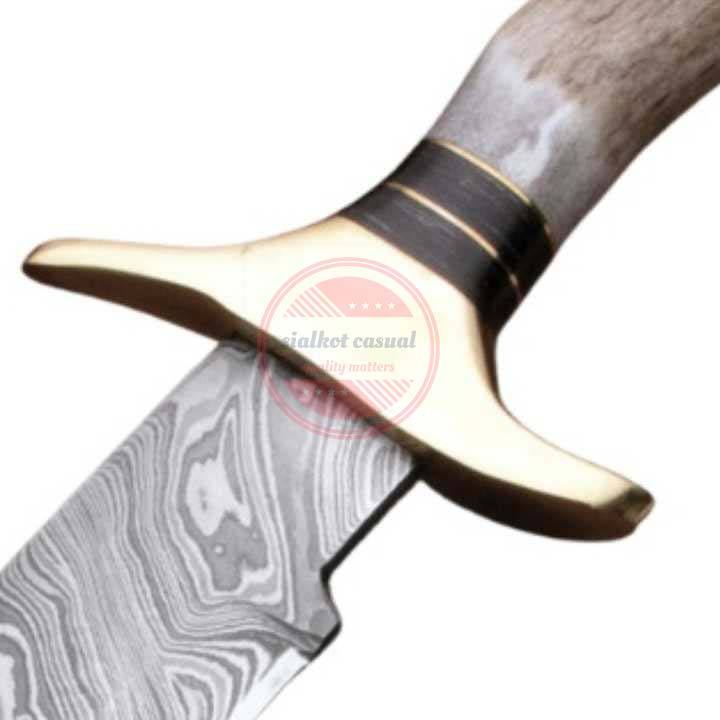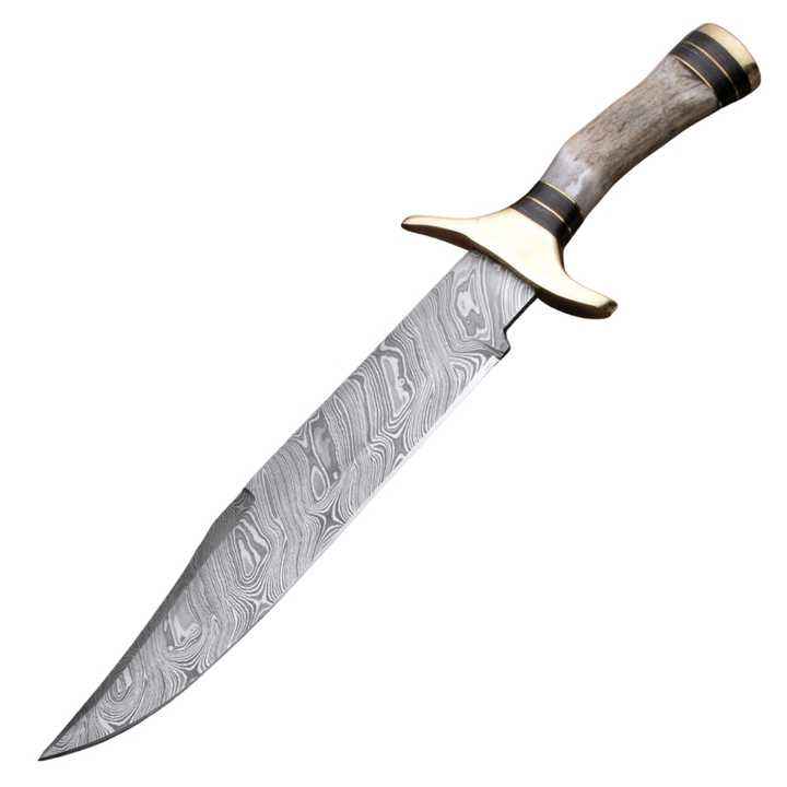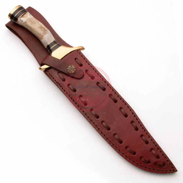 โบวี่มีดเหล็กดามัสกัสทำด้วยมือพร้อมปลอกหนัง