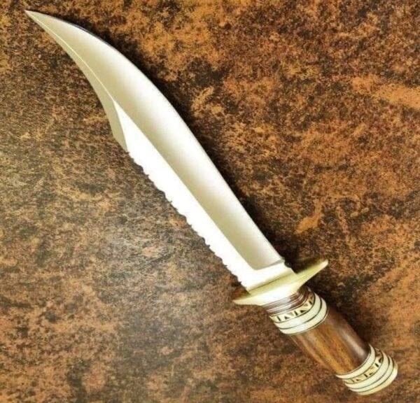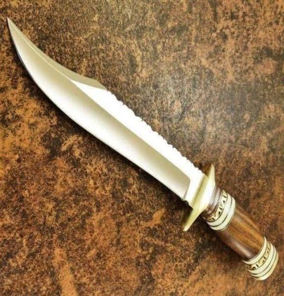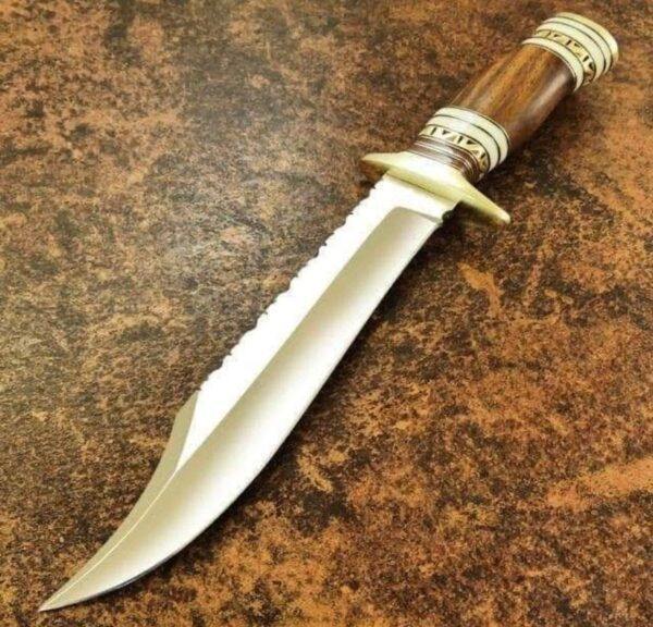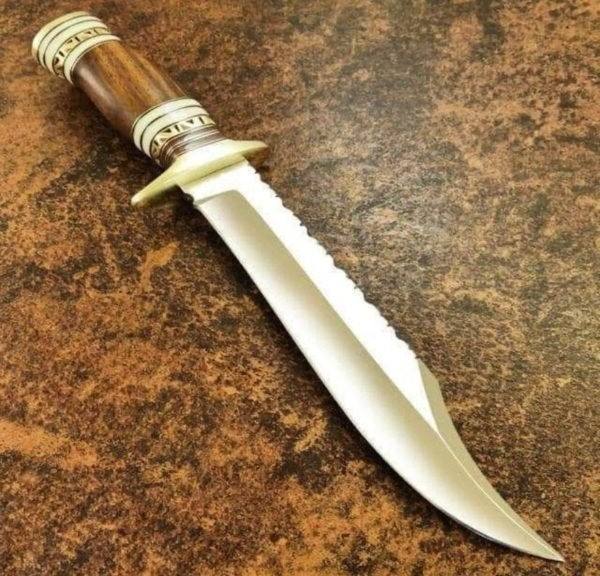 Handmade Bowie Knife Low Price D2 Steel Blade Wood Handle With Leather Sheath Camping Knives Gift For Your Friend.
