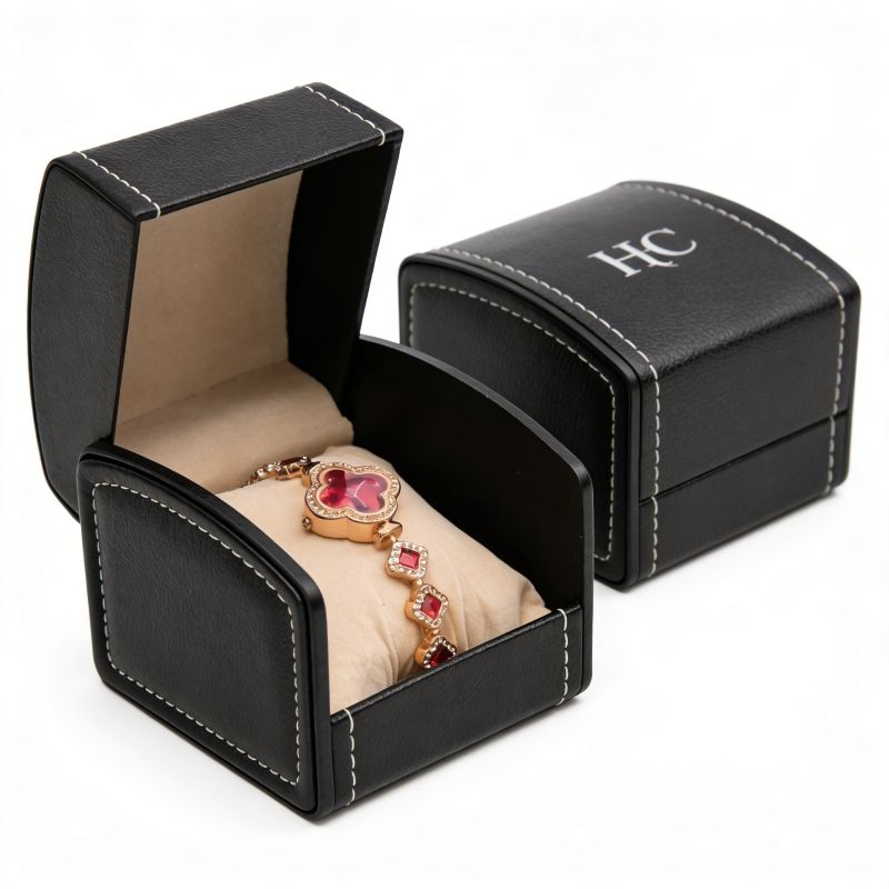กล่องใส่สร้อยข้อมือทำมือ รูปทรงตามสั่ง กล่องของขวัญเครื่องประดับหนังเทียม หมอนรองสร้อยข้อมือแบบกำหนดเอง ปั๊มฟอยล์โลโก้ตามสั่ง โรงงานผลิตโดยตรง