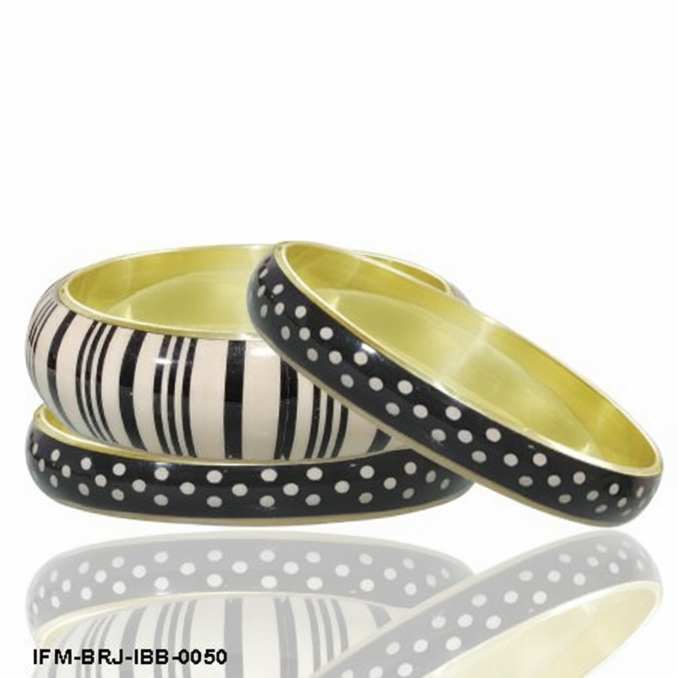ชุดกำไลข้อมือทองเหลืองทำมือ 3 ชิ้น ลายจุดขาวดำและลายทางเรซิ่น กำไลซ้อนกันได้ ดีไซน์เรขาคณิต เครื่องประดับโดดเด่น