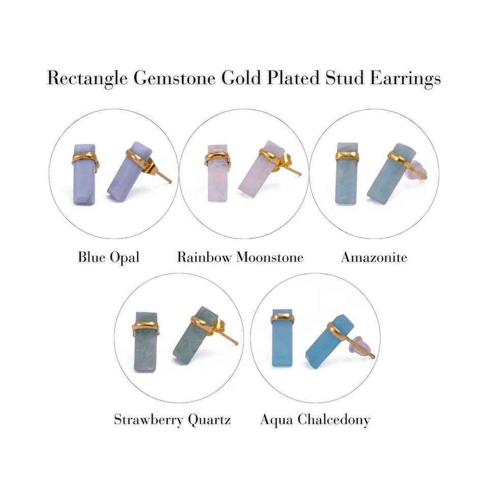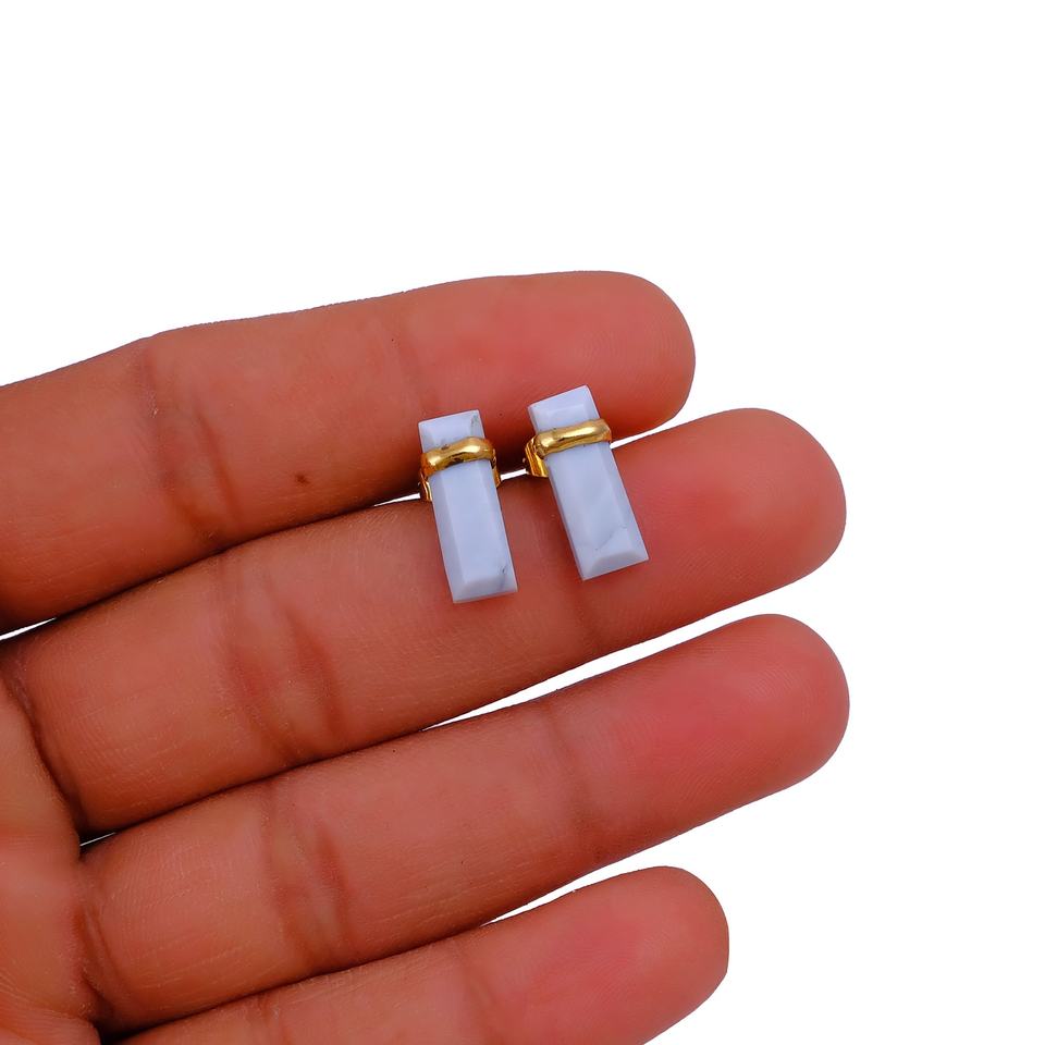 ต่างหูแบบแท่งทรงสี่เหลี่ยมผืนผ้าทำมือจากทองเหลืองประดับโอปอลสีน้ำเงิน ชุบทองคำขาวและทองคำ ดีไซน์เรียบง่ายทันสมัยสำหรับผู้หญิง
