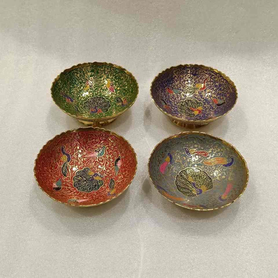 ชามทองเหลืองทำมือพร้อมงานเคลือบแบบศิลปะพื้นบ้าน สไตล์โมเดิร์น เทคนิคการทาสีแบบดั้งเดิม งานฝีมือโลหะ BoldBlossom