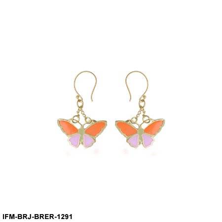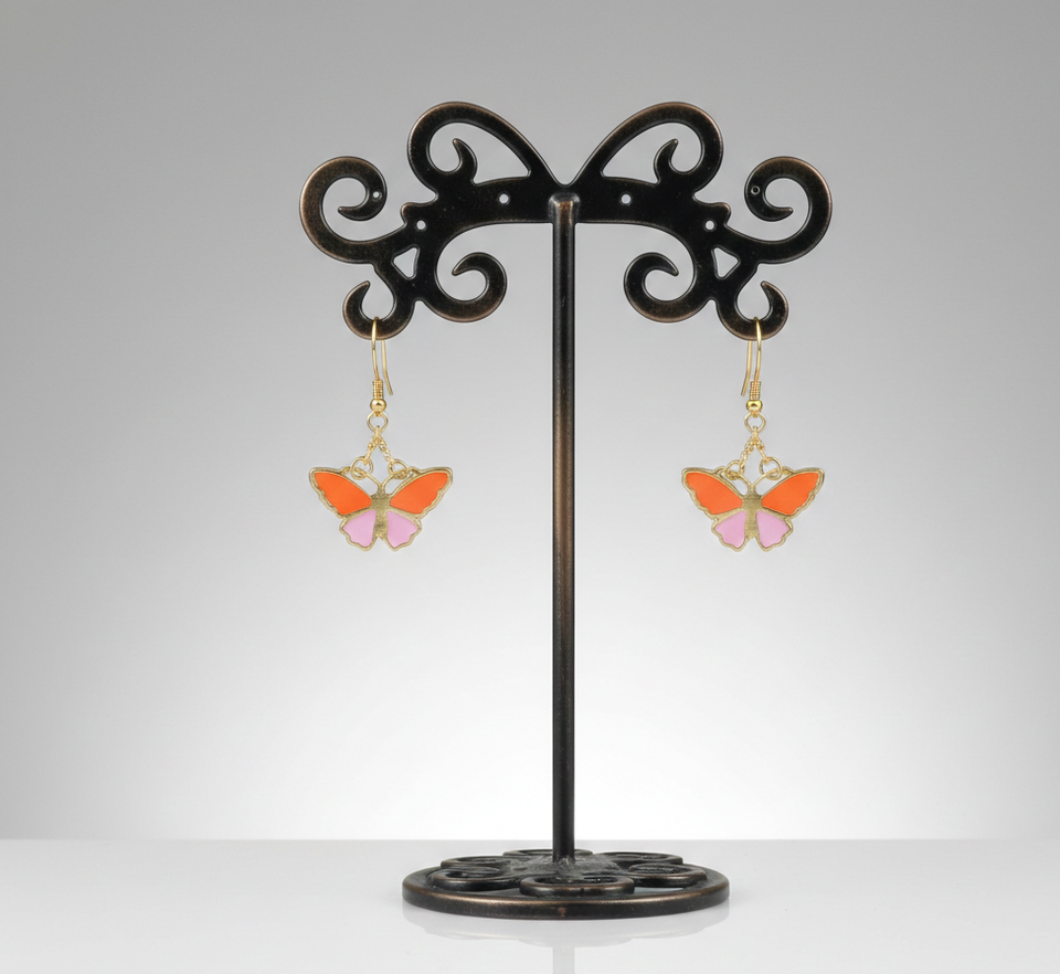 ต่างหูทองเหลืองรูปผีเสื้อทำมือ สีส้ม/ม่วง/ม่วงอ่อนเคลือบเงา สไตล์โรแมนติกสำหรับผู้หญิงใส่ไปงานปาร์ตี้
