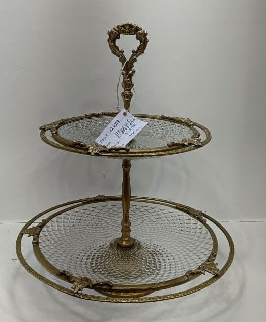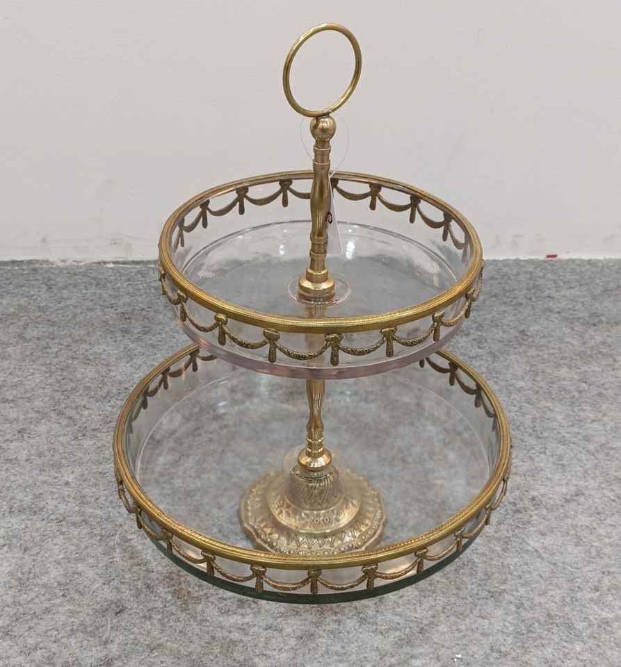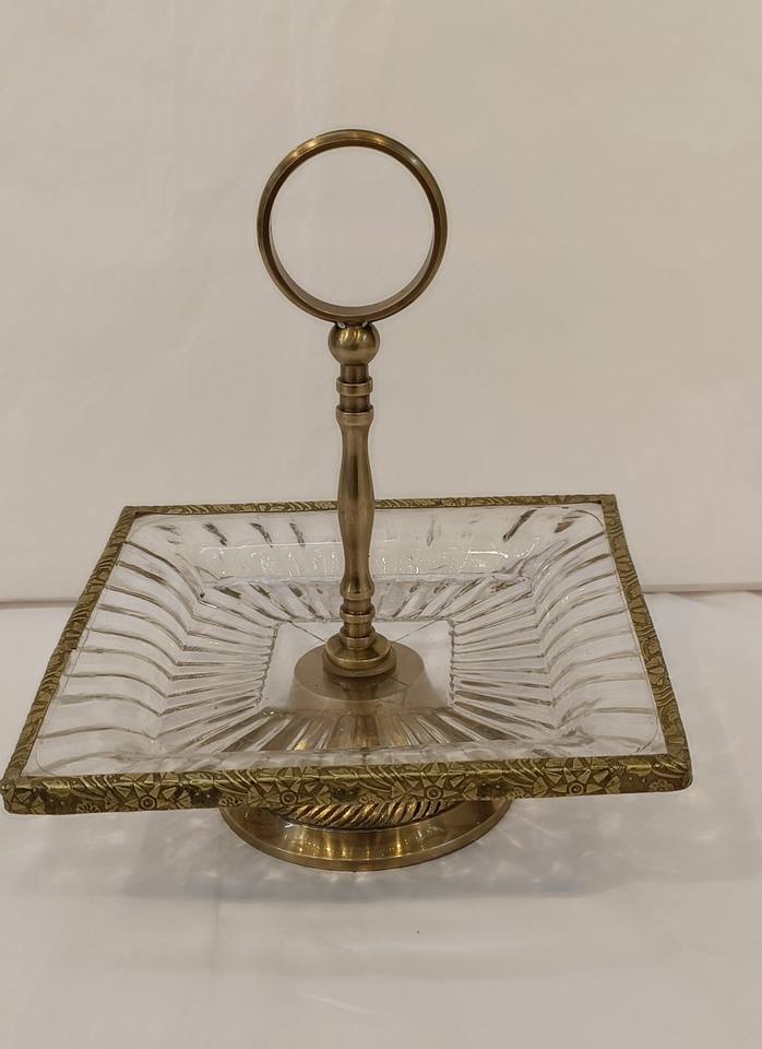 แท่นวางเค้กทองเหลืองทำด้วยมือพร้อมกระจกด้านบนสุดหรูของหวานผลไม้และอาหารของขวัญที่แวววาว