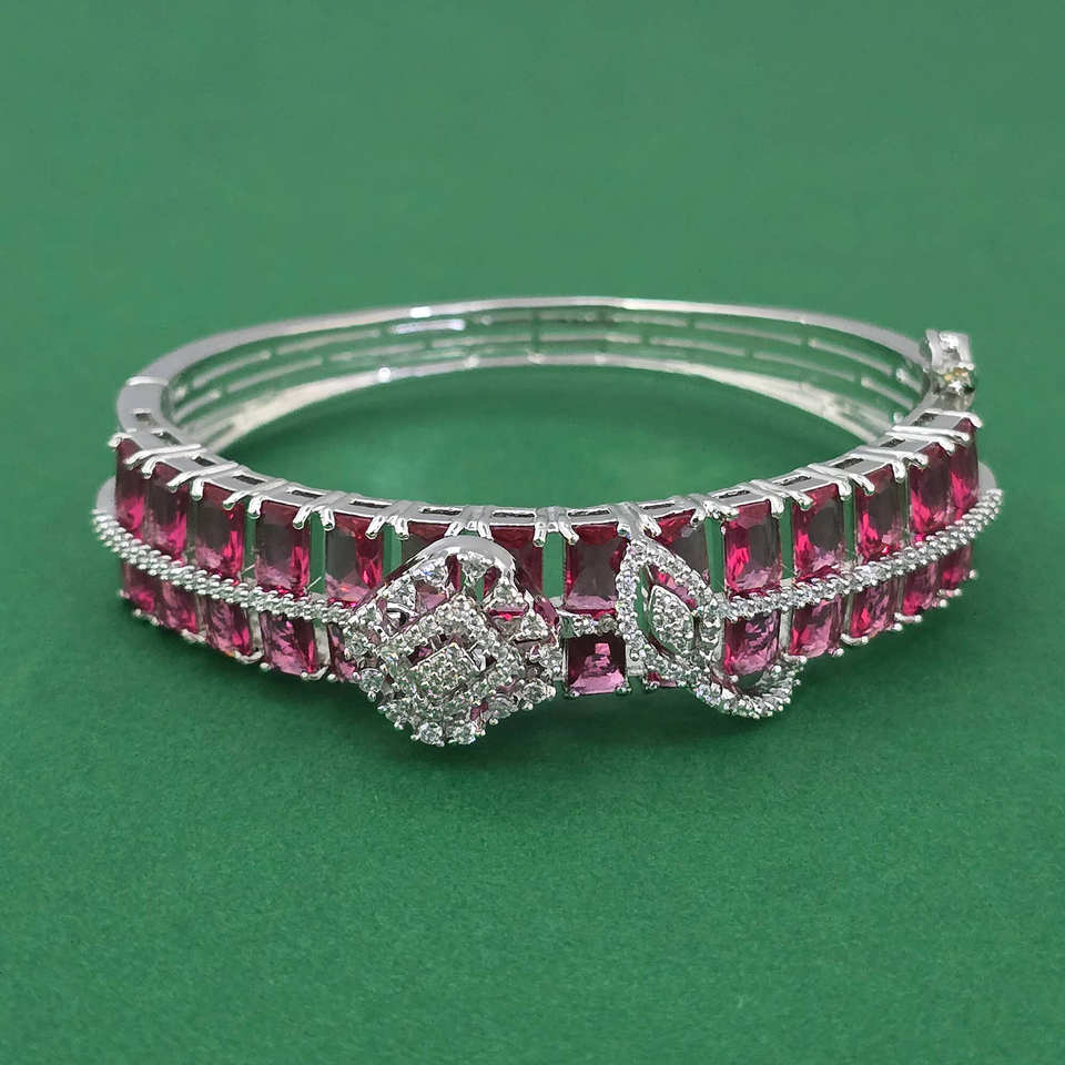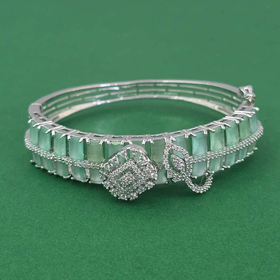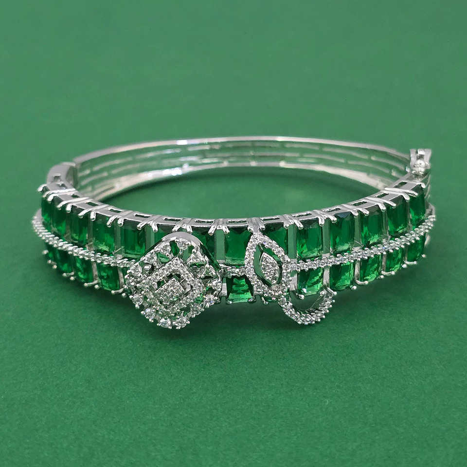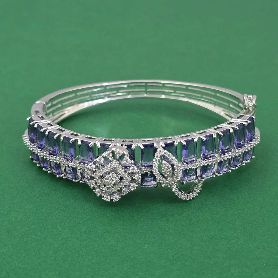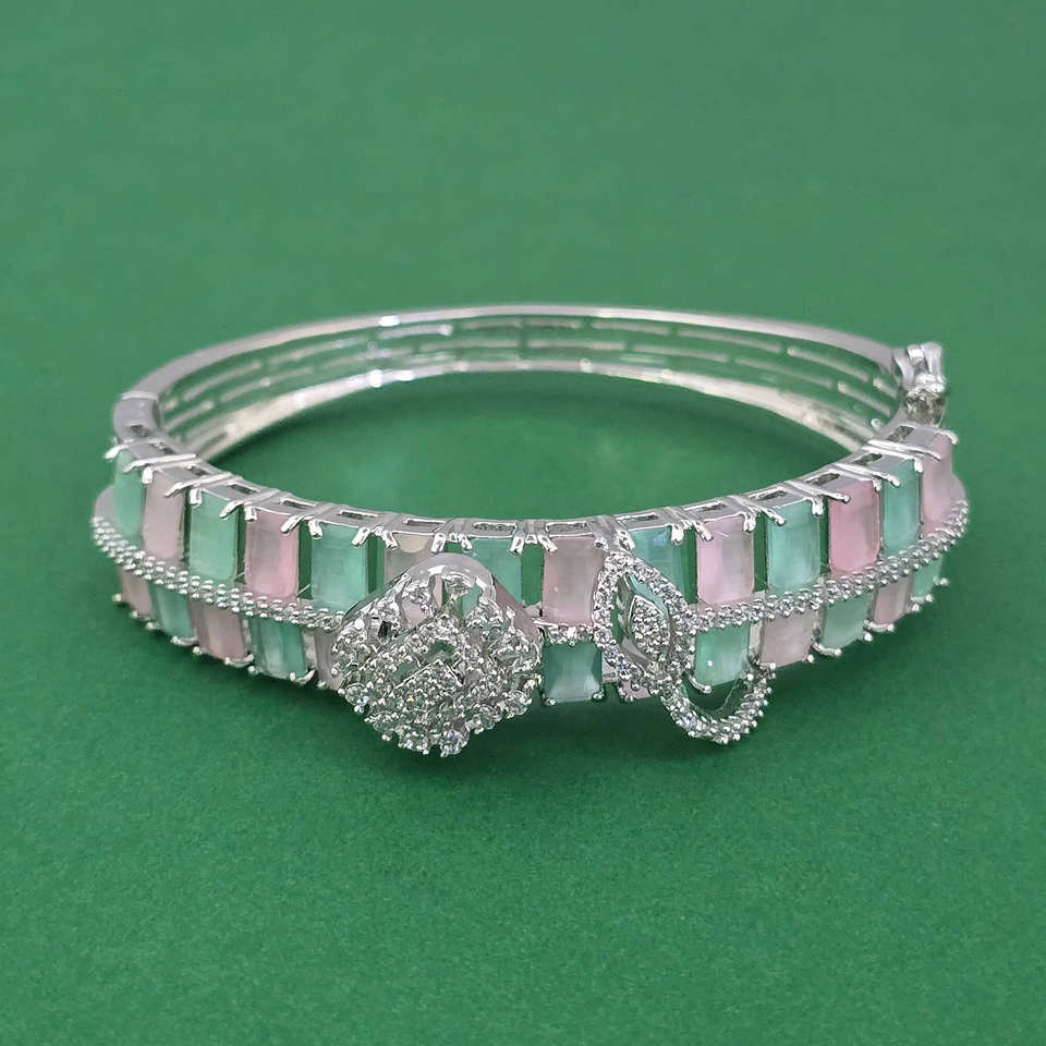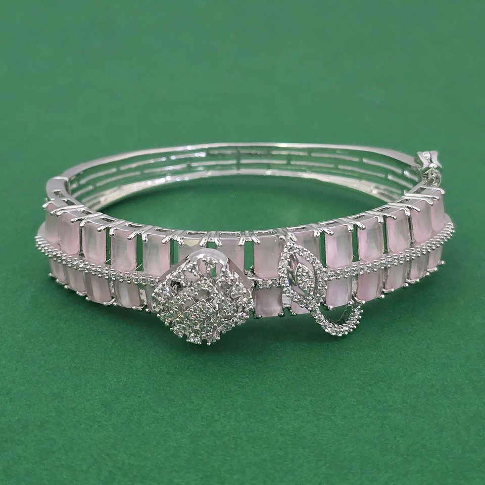 กำไลข้อมือทองเหลืองทำมือประดับเพชรคิวบิกเซอร์โคเนียแบบเปิดได้ ชุบโรเดียม ดีไซน์ลายสันติภาพ สไตล์คลาสสิก ของขวัญจาก Kanhai Jewels รุ่น 443961