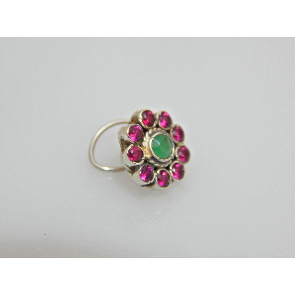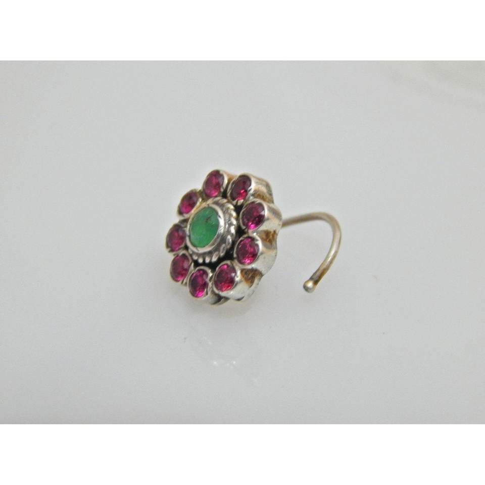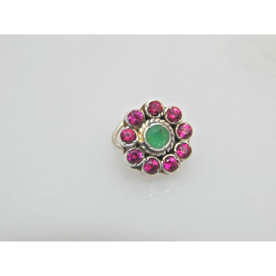 แหวนจมูกทองเหลืองทำมือประดับพลอยทับทิมและมรกตธรรมชาติ ดีไซน์คลาสสิกแบบวงกลม พร้อมใบรับรอง ASTM ของขวัญที่สมบูรณ์แบบสำหรับเธอ