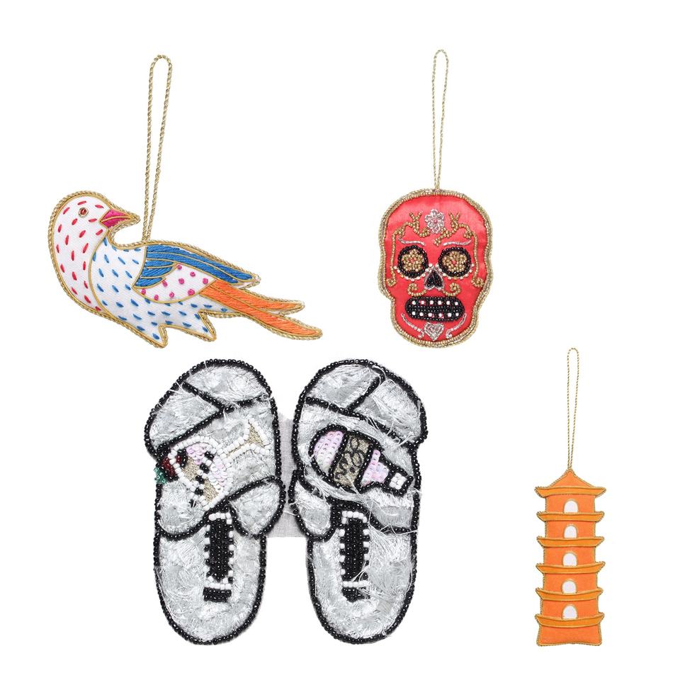 แฮนด์เมดเครื่องประดับต้นคริสต์มาสสตูดิโอบราซิลปักลูกปัดผ้าซาตินสีตามสั่งลายซานตาคลอส