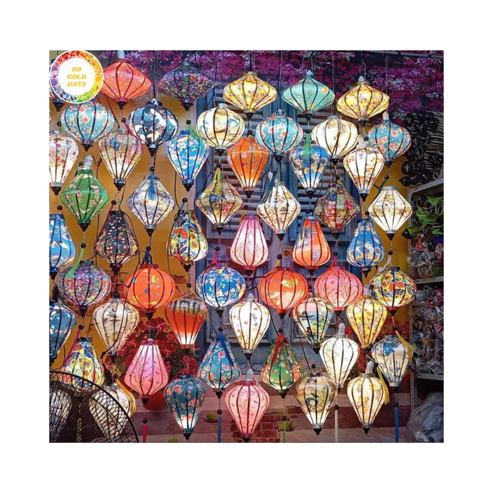 โคมไฟไหมผ้าไหมลายปักทำมือ งานฝีมือแท้ของเวียดนาม สำหรับงานเลี้ยงธีมโอเรียนทัลและของตกแต่งบ้าน