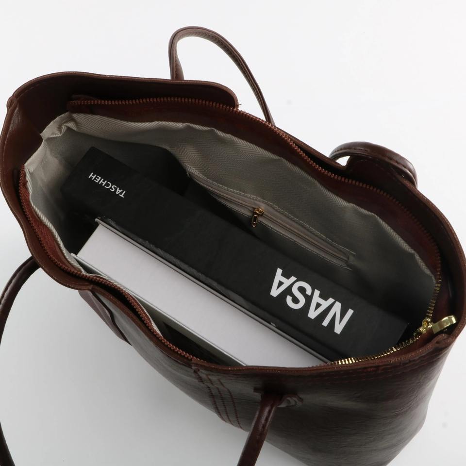 กระเป๋าโท้ทหนังแท้สีน้ำตาลทำมือ พร้อมซิปปิด น้ำหนักเบา ทนทาน ใช้งานได้ทุกวัน ของขวัญคริสต์มาสสำหรับเธอ