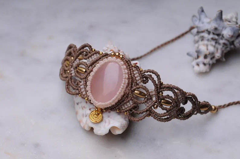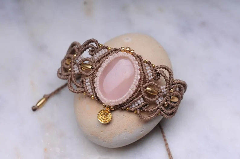 สร้อยข้อมือมาคราเม่หินออนิกซ์สีดำทำมือ ชุบทองวินเทจ สไตล์โบโฮ ปรับขนาดได้ ของขวัญเครื่องประดับเพื่อสุขภาพ