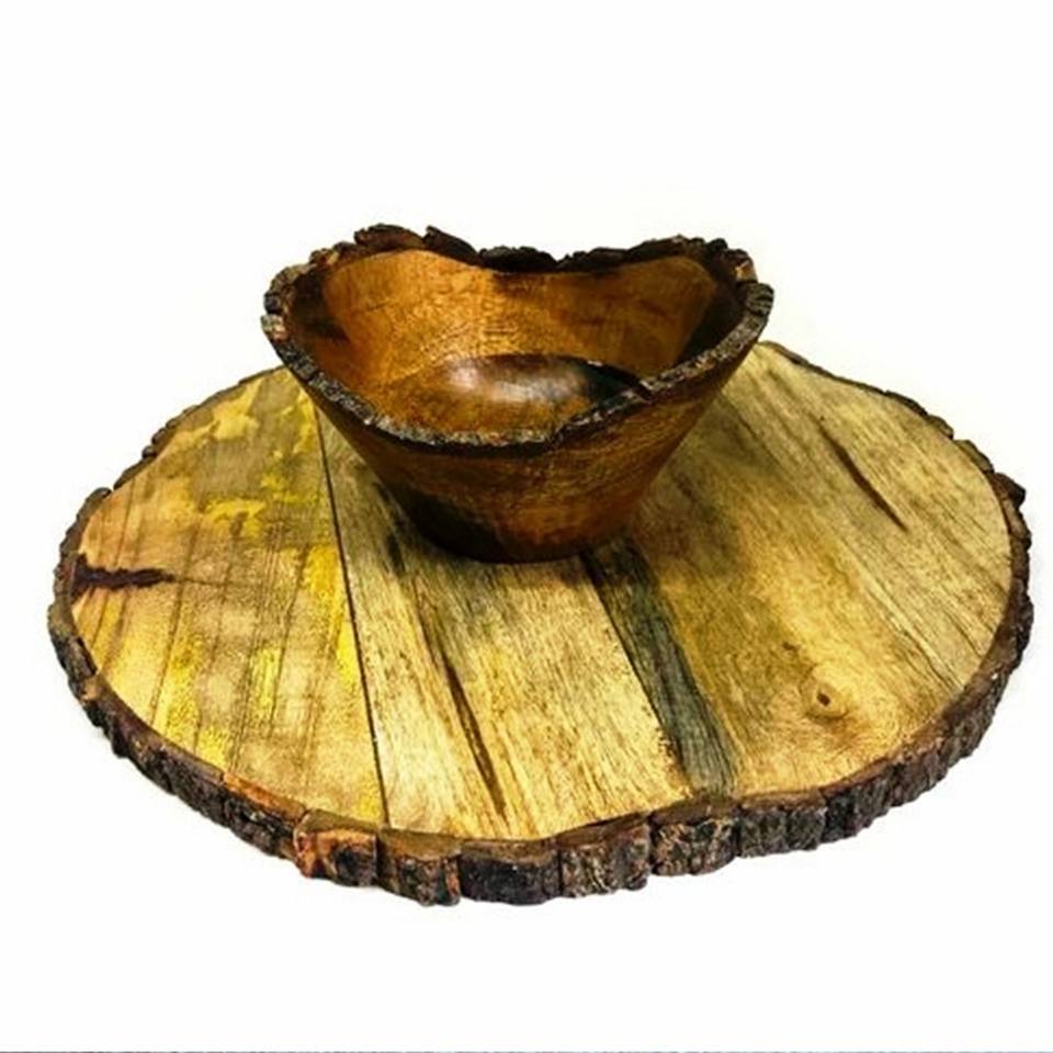 ชามตกแต่งทำด้วยมือทำด้วยมือทำจากไม้มะม่วงพร้อมเปลือกต้นไม้ทำในอินเดีย