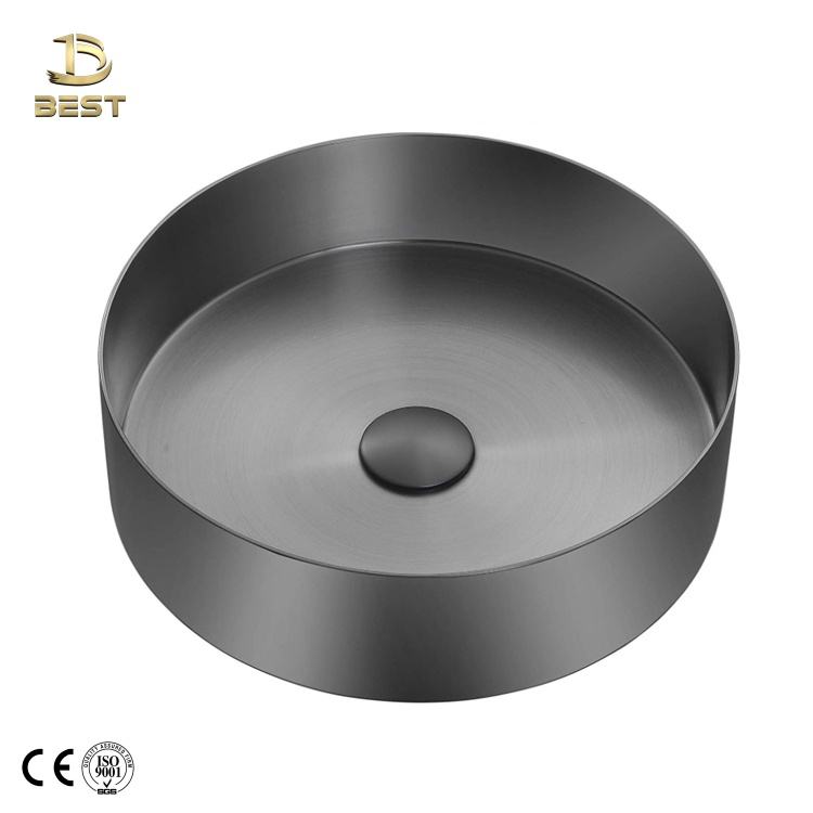 Handmade Brushed Stainless Steel Single Bowl Sink Circle Shape with Strainer Made Vietnam for Bathroom Kitchen