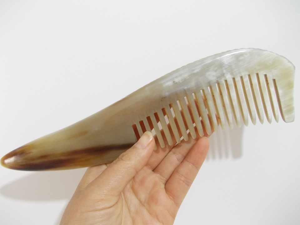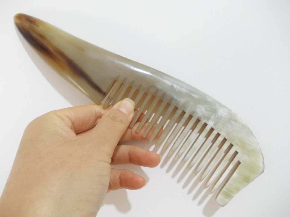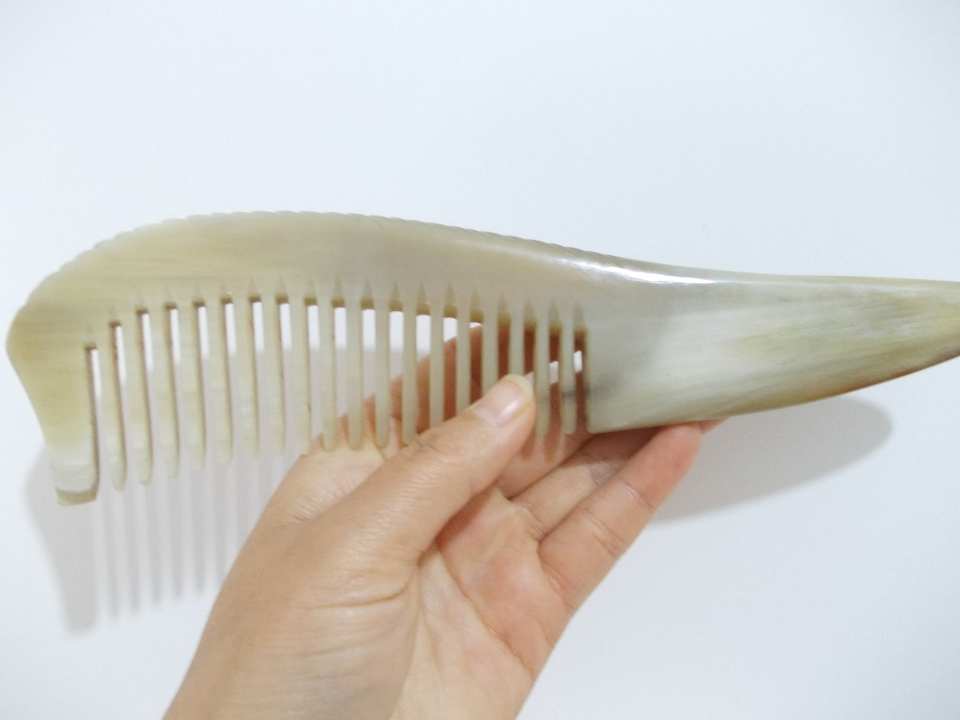 หวีเขาควายทำด้วยมือหวีป้องกันไฟฟ้าสถิตย์และทนทานหวีแต่งขนสัตว์ตามธรรมชาติสำหรับใช้ในชีวิตประจำวันพร้อมตัวเลือกโลโก้ที่กำหนดเอง