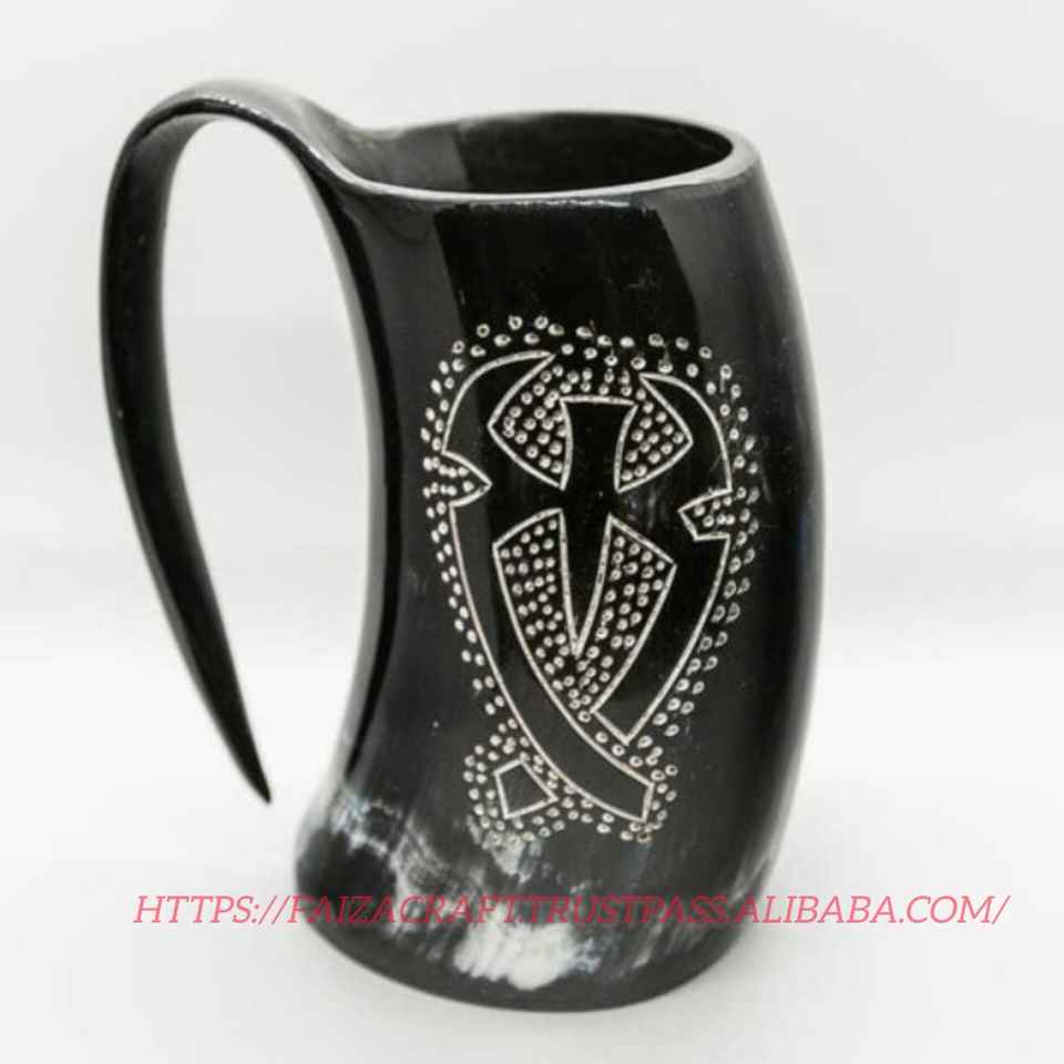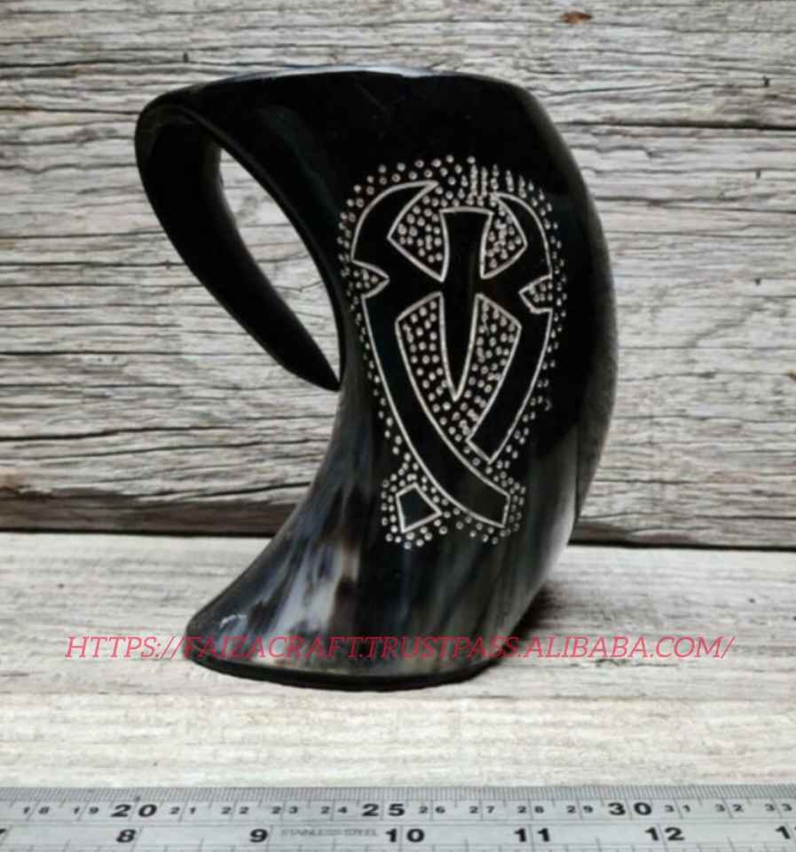 แก้วน้ำทำมือจากเขาควาย รูปทรงธรรมชาติ ทนทาน สไตล์โบราณ ของตกแต่งบ้าน ของขวัญ ขายส่ง ของแท้ ขัดเงา