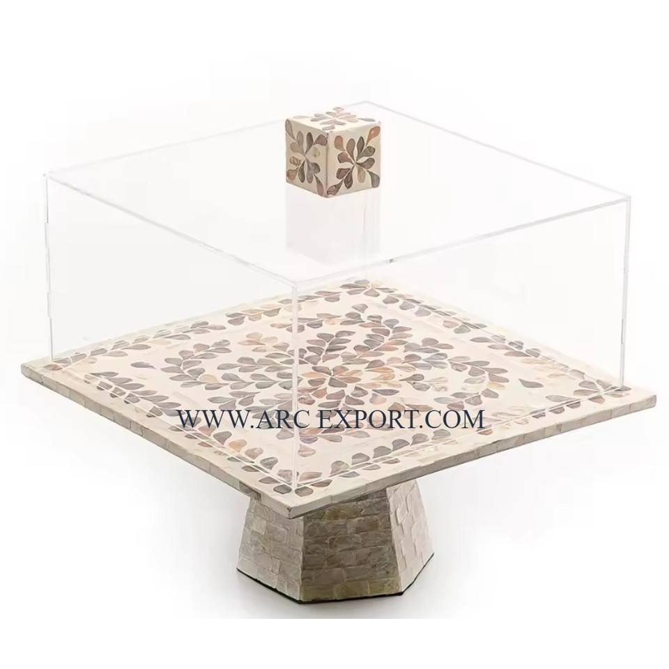 แท่นวางเค้กทำด้วยมือสีเขียวแม่ของโต๊ะทำงานไข่มุกจานเค้กของหวานและเค้กถาดโลหะสำหรับตกแต่ง