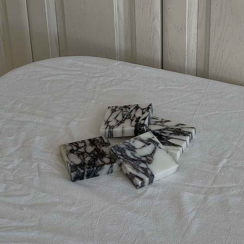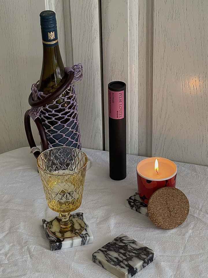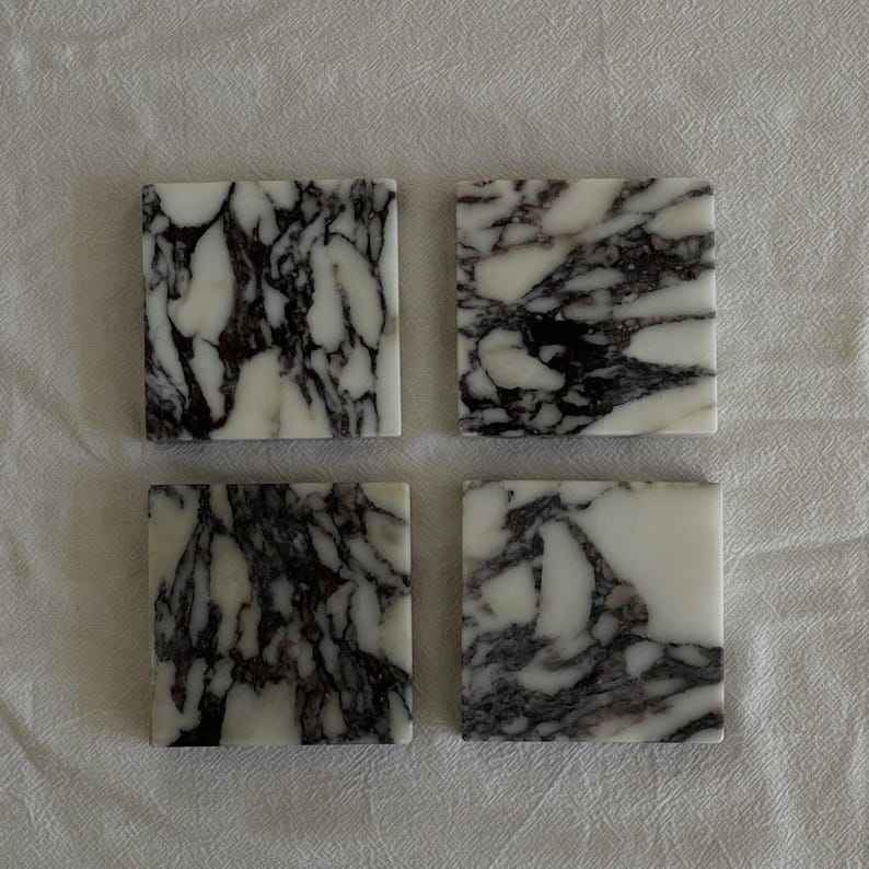 ชุดจานรองแก้วหินอ่อน Calacatta Viola ทำมือ 2 ชิ้น ของขวัญสุดหรู