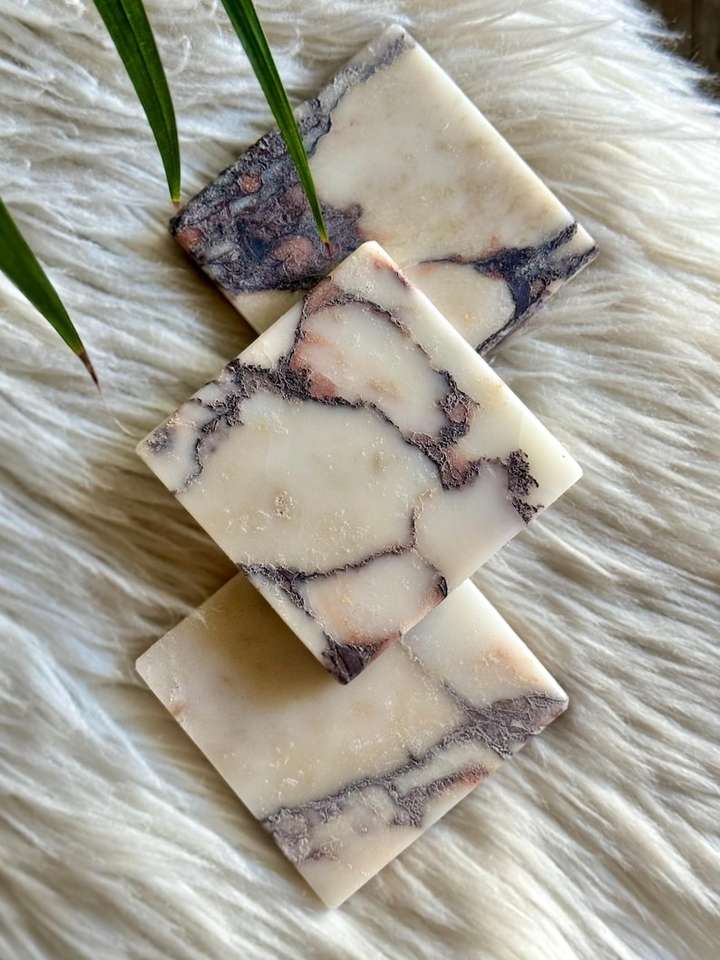แผ่นรองแก้วหินอ่อนคาลาคัตต้าวิโอลาทำมือ ของใช้บนโต๊ะอาหารสุดหรู ของตกแต่งบ้าน ของขวัญ