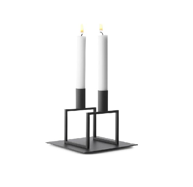 เชิงเทียนหล่ออลูมิเนียมเคลือบผงสีดำเสาทีไลท์สถานที่หรูหราตกแต่งเชิงเทียนขายส่ง