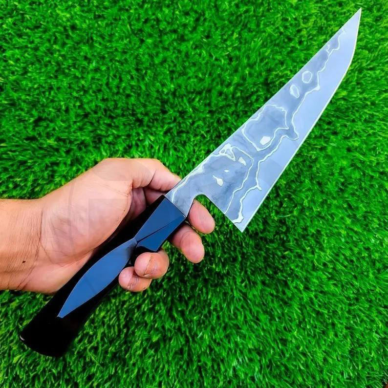 มีดเชฟแกะสลักจากเหล็กกล้าคาร์บอนทำด้วยมือพร้อมใบมีดแกะสลักที่สวยงามและใช้งานง่ายสำหรับอุตสาหกรรมและการตั้งแคมป์แบบอยู่รอด