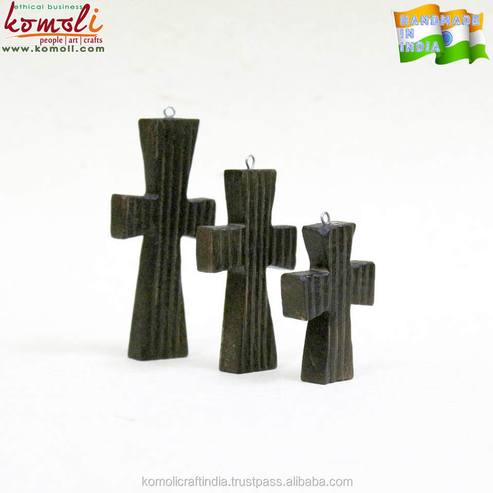 ทำด้วยมือแกะสลักเครื่องประดับไม้จี้ข้ามไม้