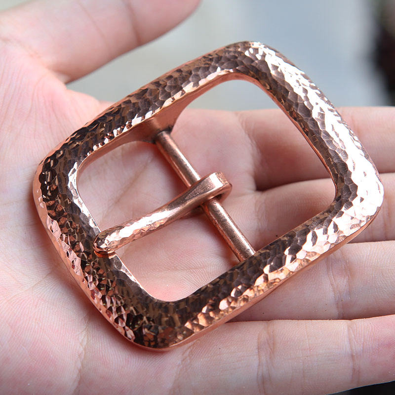 Handmade Casual Belt Buckle Men's Red Copper Pin Buckle with Purple Leather New Brass Buckle Design