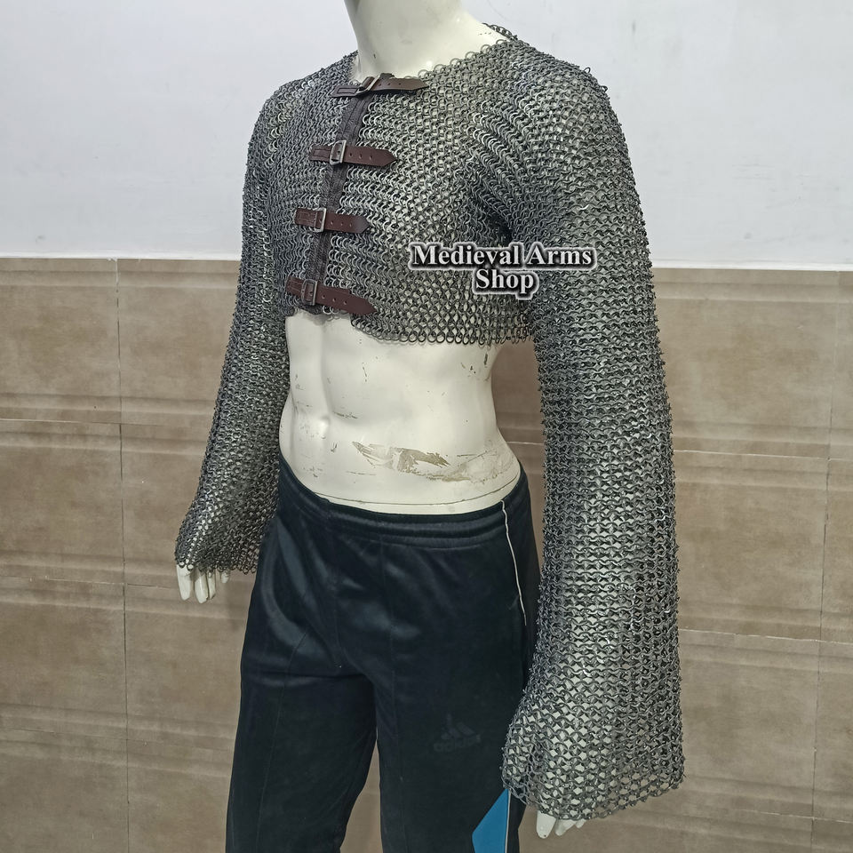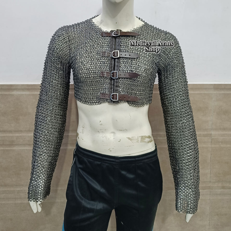 เสื้อเกราะแฮนด์เมดทำจากเหล็กกล้าอ่อน แขนยาว ตอกหมุดแบบแบน สำหรับคอสเพลย์ บทบาทสมมุติ หรือการแสดงประวัติศาสตร์