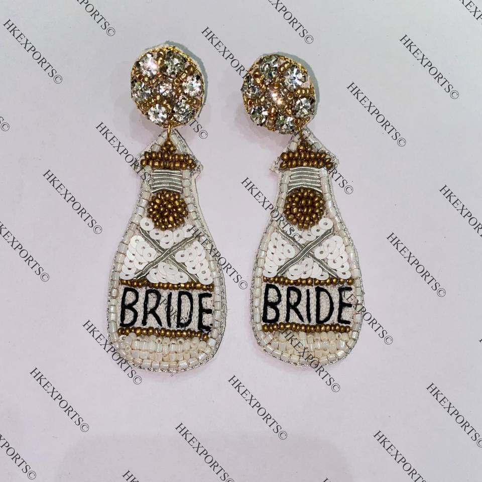 ต่างหูลูกปัดสีชมพูแชมเปญหรูหราทำด้วยมือแบบห้อยยาวชุบทองสำหรับงานแต่งงานและโอกาสพิเศษ