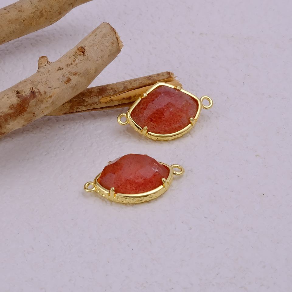 แฮนด์เมดควอตซ์เชอร์รี่แฟนซีพลอยชุบทองตัวเชื่อมต่อแบบสองชั้นแบบทำเครื่องประดับ DIY และกำไล
