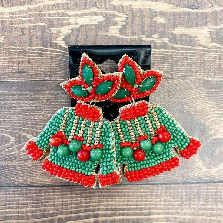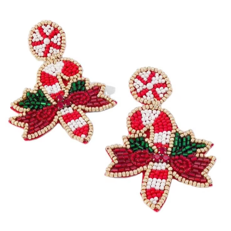 ต่างหูห้อยประดับด้วยลูกปัดสำหรับวันคริสต์มาสทำด้วยมือจากอินเดีย