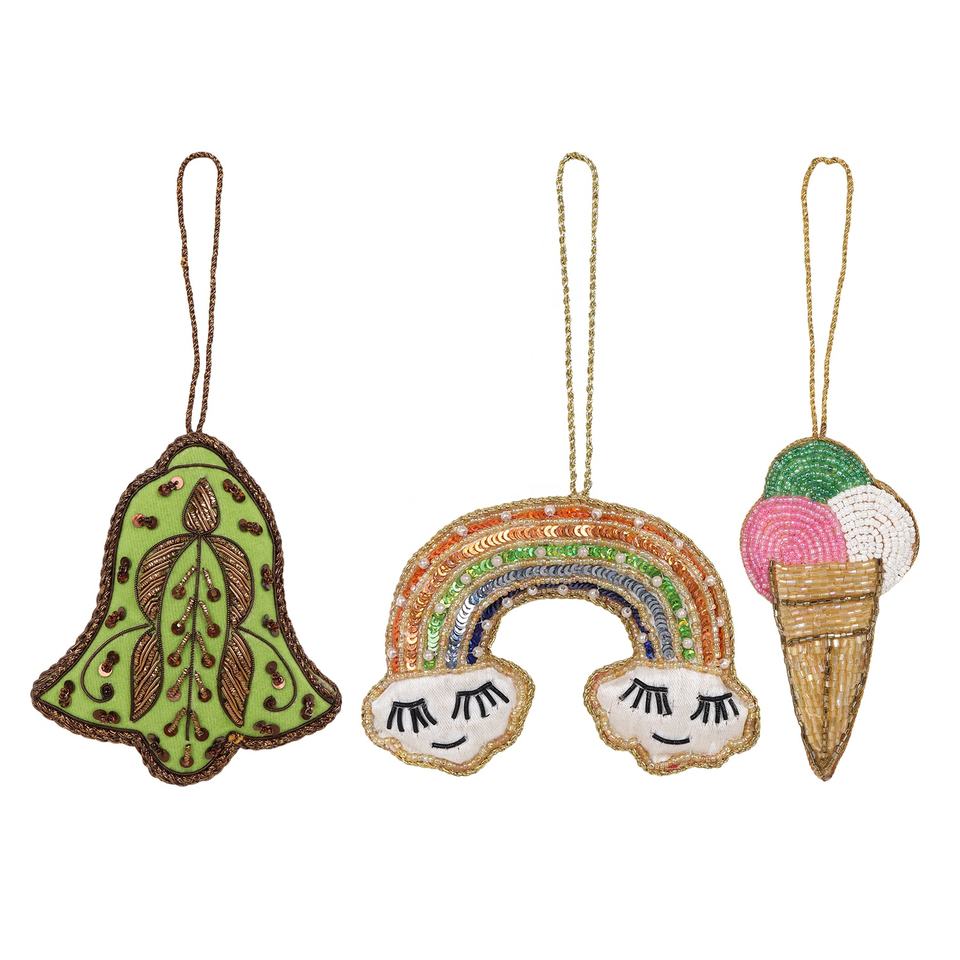 Velvet, Satin, beads, Golden rColorful threadsวัสดุ