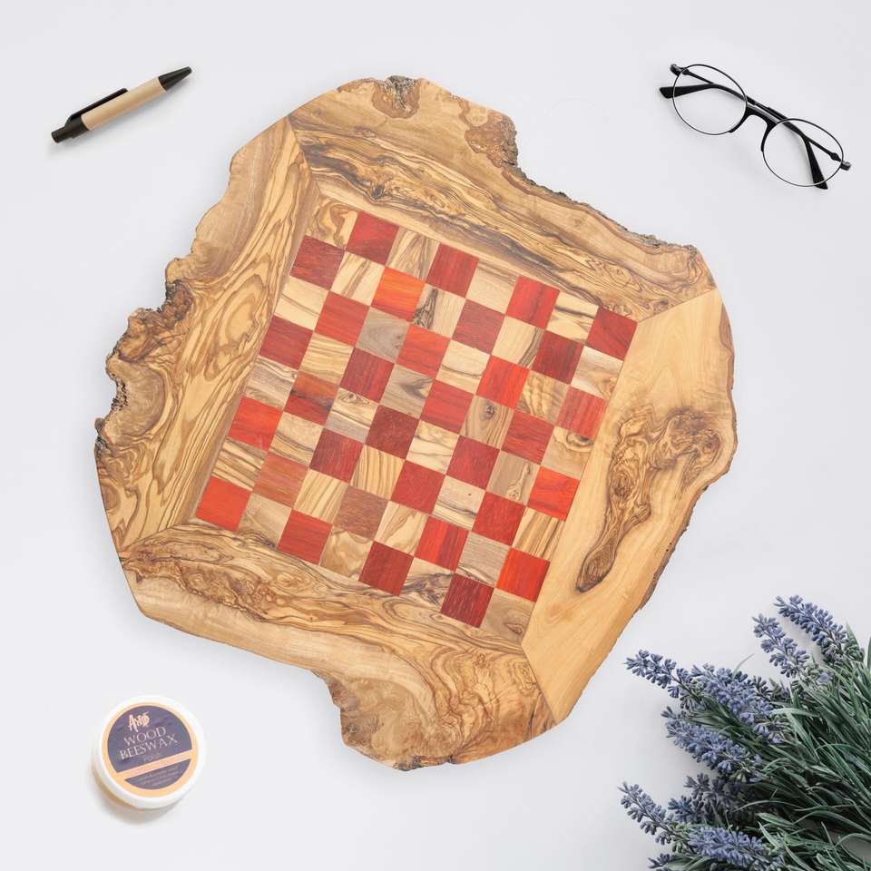 กระดานหมากรุกและกระดานหมากรุกไม้มะกอกไอเดียของขวัญคริสต์มาสทำด้วยมือสำหรับเขาจากงานฝีมือแมกนีเซีย