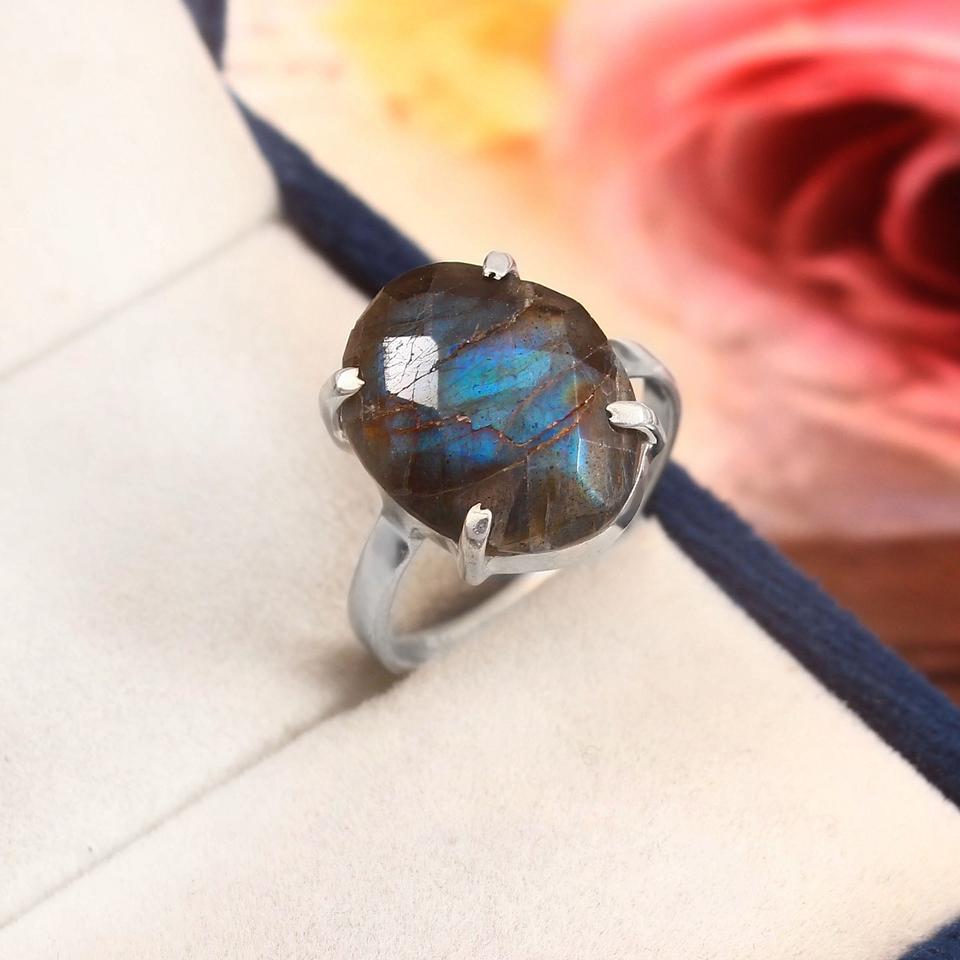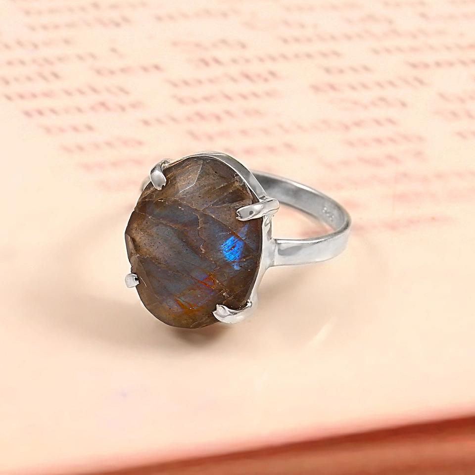 แหวนเงินแท้ 925 ประดับลาบราดอไรต์สีทองเหลือง ดีไซน์คลาสสิค งานแฮนด์เมด สำหรับผู้หญิง ตัวเรือนแบบสี่ขา ชุบทอง เหมาะสำหรับวันครบรอบหรือเป็นแหวนหมั้น