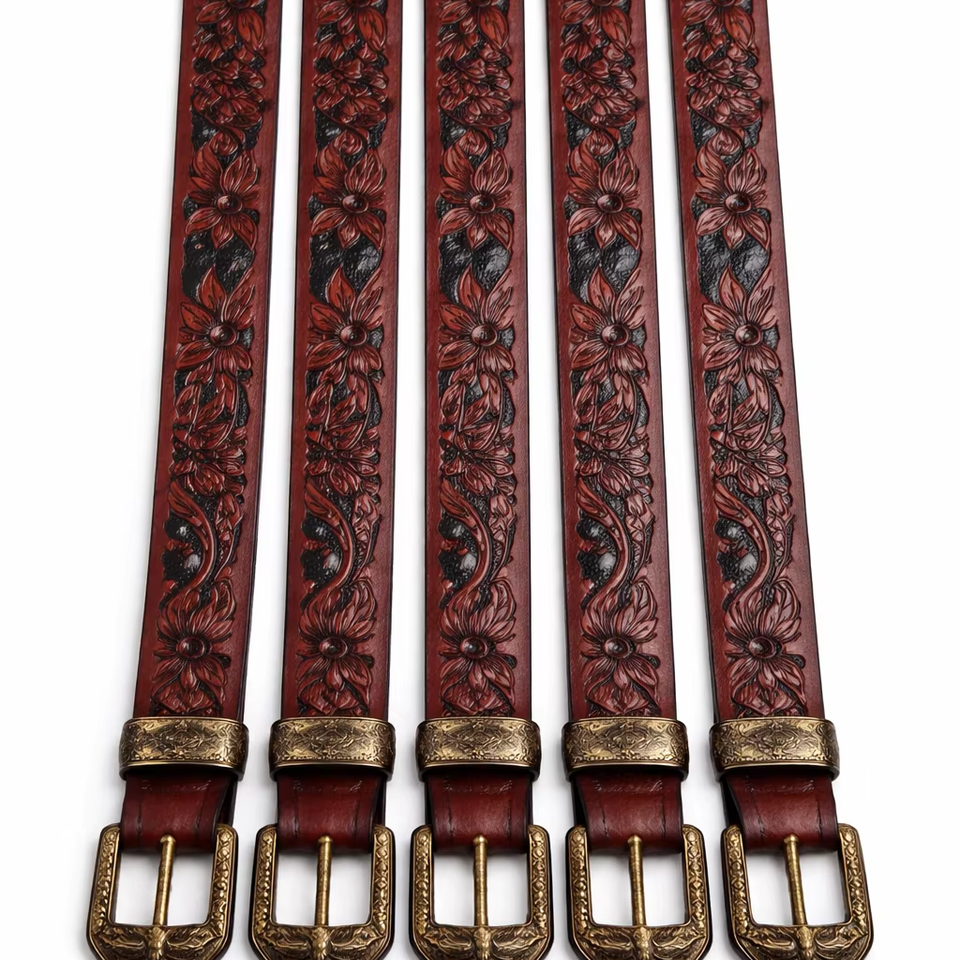 เข็มขัดหนังลายดอกไม้คลาสสิกทำมือ พร้อมดีไซน์แบบโบราณ สำหรับชุดสไตล์ตะวันตก แฟชั่นงานฝีมือ เครื่องประดับวินเทจ