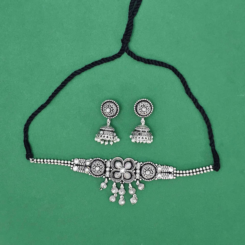 สร้อยคอ Polki ทำด้วยมือคลาสสิกพร้อมชุดเครื่องประดับแฟชั่นอินเดียเคลือบสารออกซิไดซ์