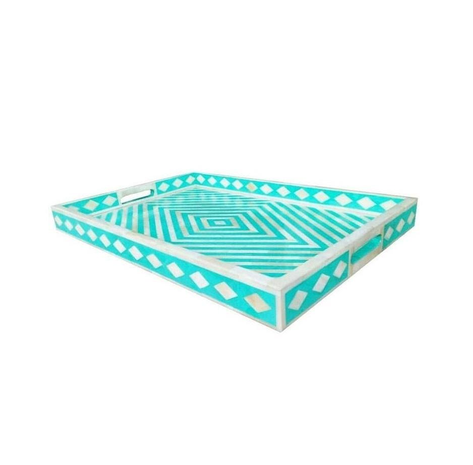 ถาดฝังกระดูกสีขาวสีน้ำเงินทรงสี่เหลี่ยมผืนผ้าคลาสสิกทำด้วยมือสำหรับห้องนั่งเล่นโต๊ะกาแฟและตกแต่งเคาน์เตอร์ห้องครัว