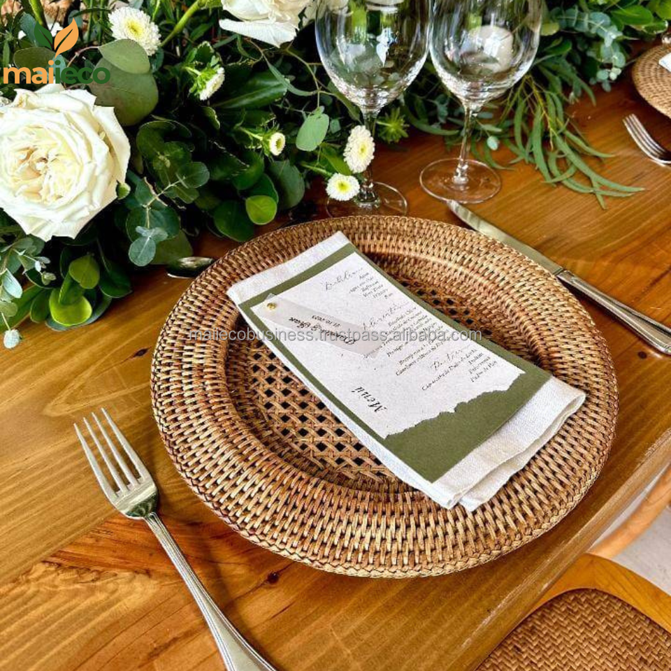 คำอธิบาย:แผ่นรองจานบนโต๊ะหวายสำหรับรับประทานอาหารงานแต่งงานที่บ้าน