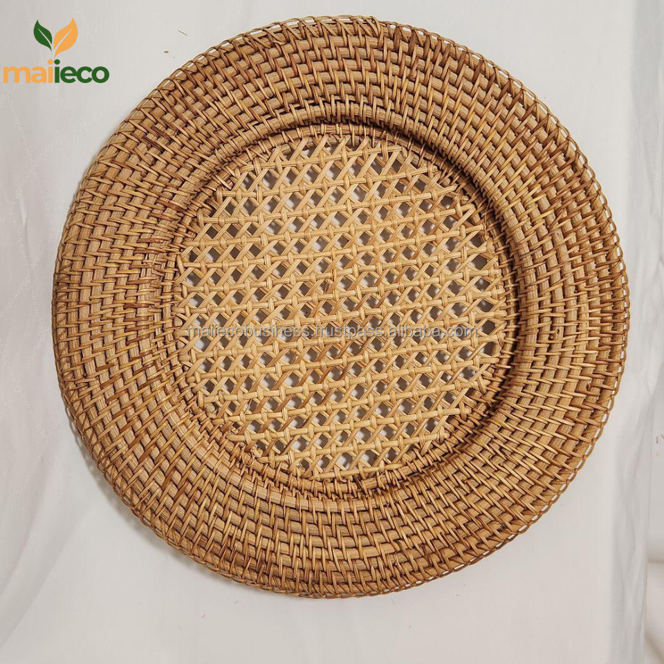 ที่รองจานหวายสานด้วยมือสไตล์คลาสสิกขนาด30ซม. ที่รองจานหวายถักด้วยมือและแท่นชาร์จ