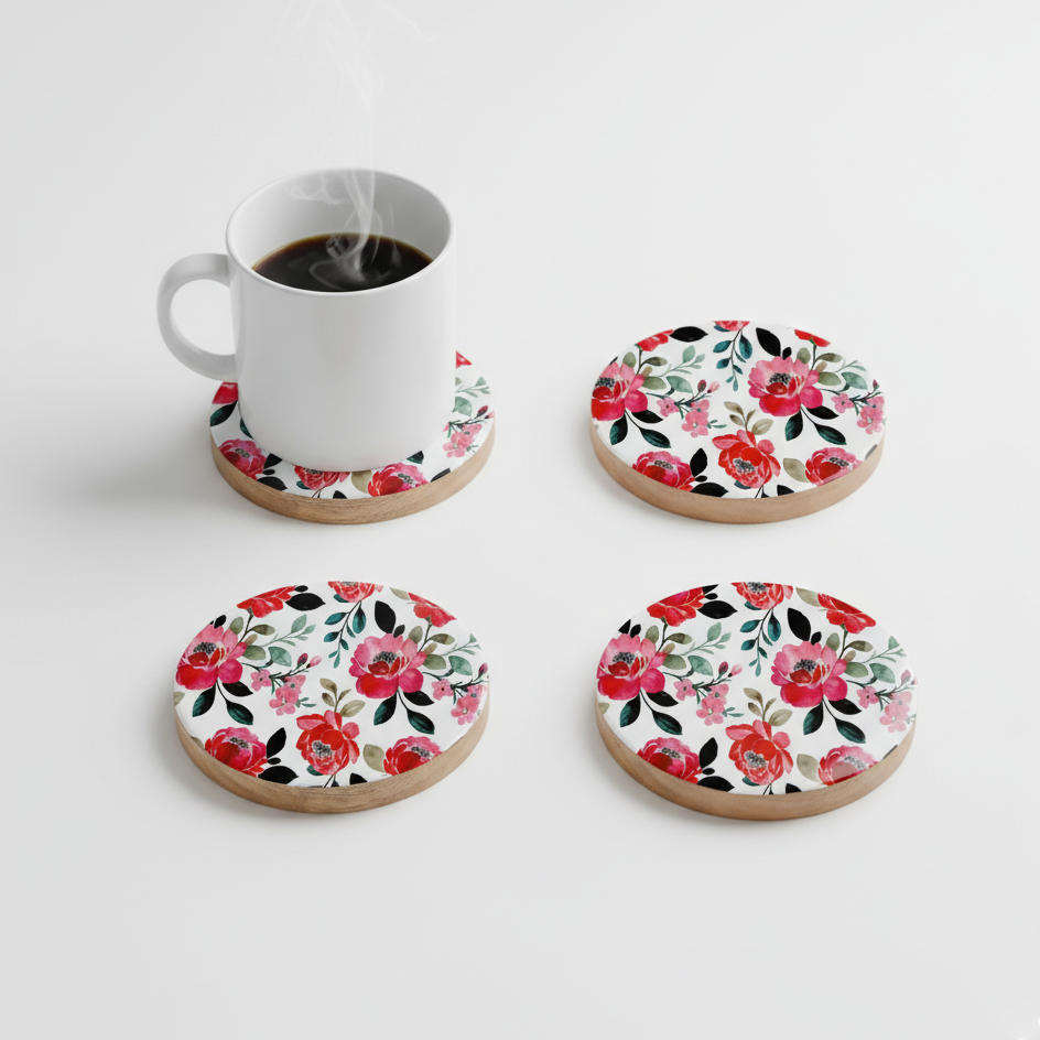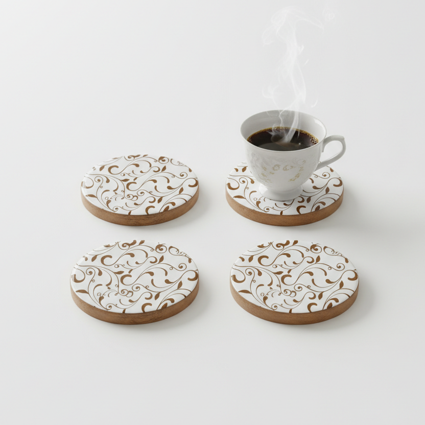 ที่รองแก้วไม้มะม่วงสไตล์คลาสสิกทำมือ ลายพิมพ์เคลือบแบบไร้รอยต่อ สำหรับใช้ในครัว แก้วน้ำ และโต๊ะอาหาร
