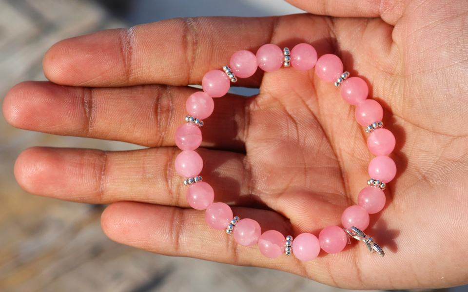แฮนด์เมดสไตล์คลาสสิกสีชมพูกุหลาบควอตซ์สำหรับสร้อยข้อมือลูกปัดอัญมณีธรรมชาติสำหรับวันครบรอบแต่งงานหรือของขวัญ