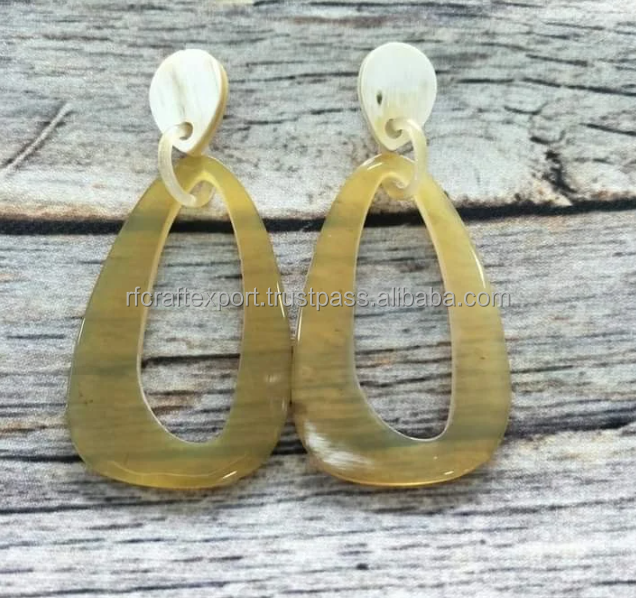 ต่างหูห้อยทำด้วยมือแบบคลาสสิกไม่ซ้ำใครทำจากธรรมชาติควายฮอร์นต่างหูรูปเขาควายหรูหราทำจากอินเดียโดย rfcrafts