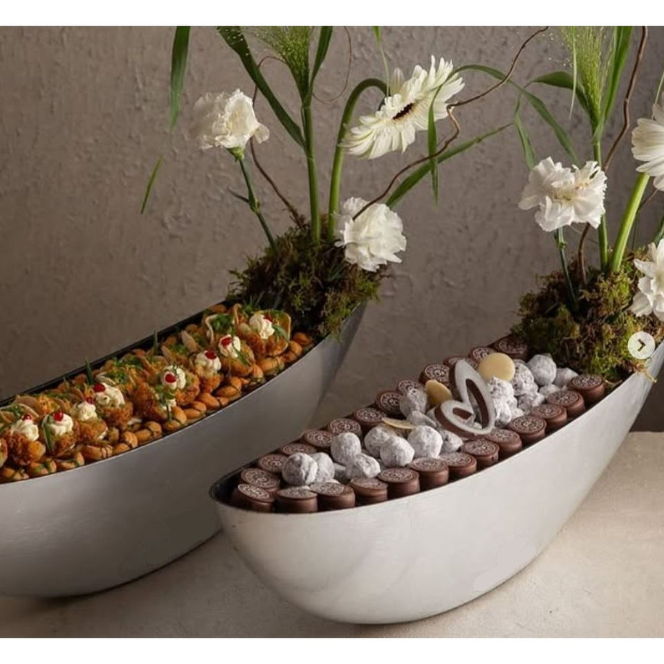 ชามเสิร์ฟโลหะสีขาวคลาสสิกทำด้วยมืออุปกรณ์เซิร์ฟเวอร์สำหรับทำขนมช็อกโกแลตขนมหวาน